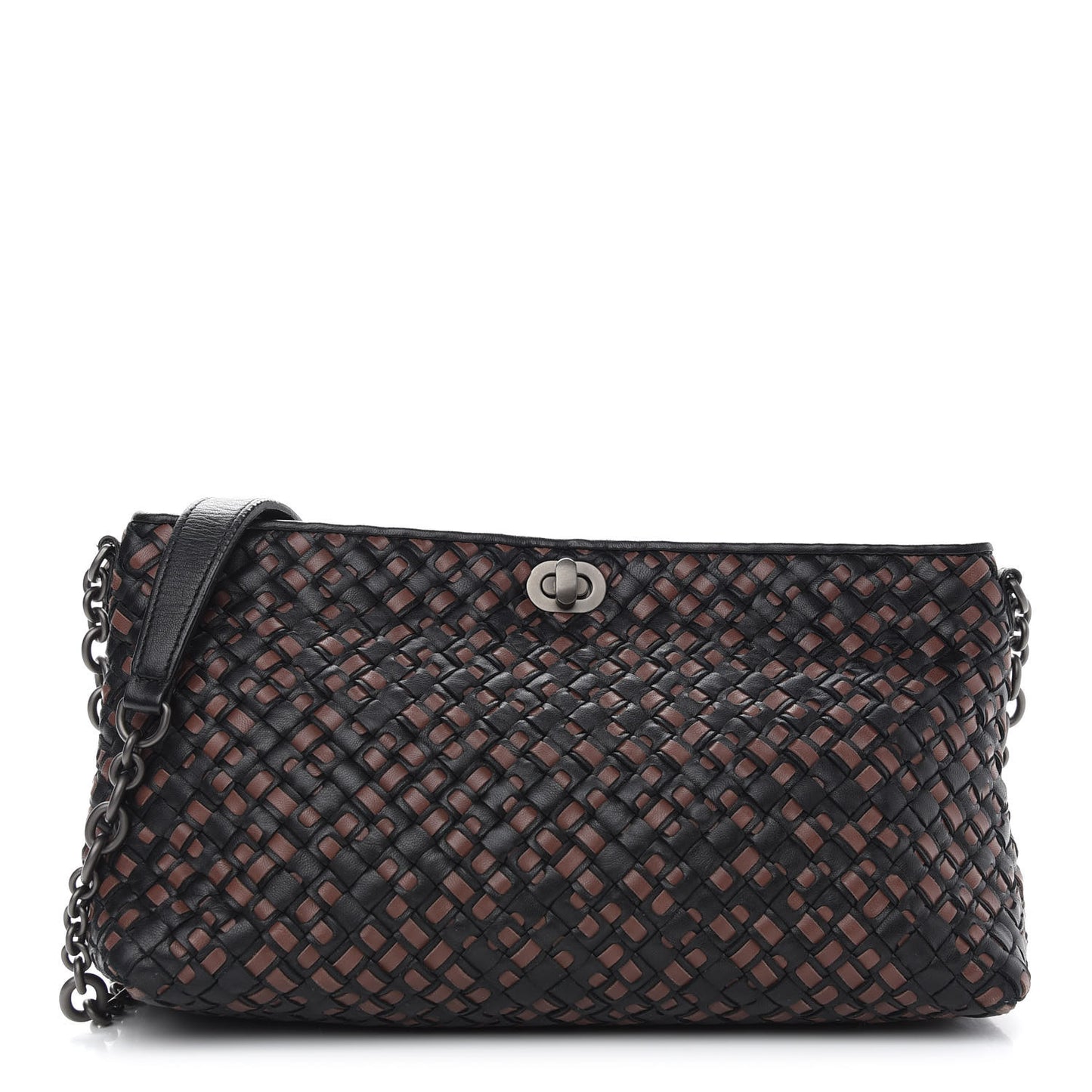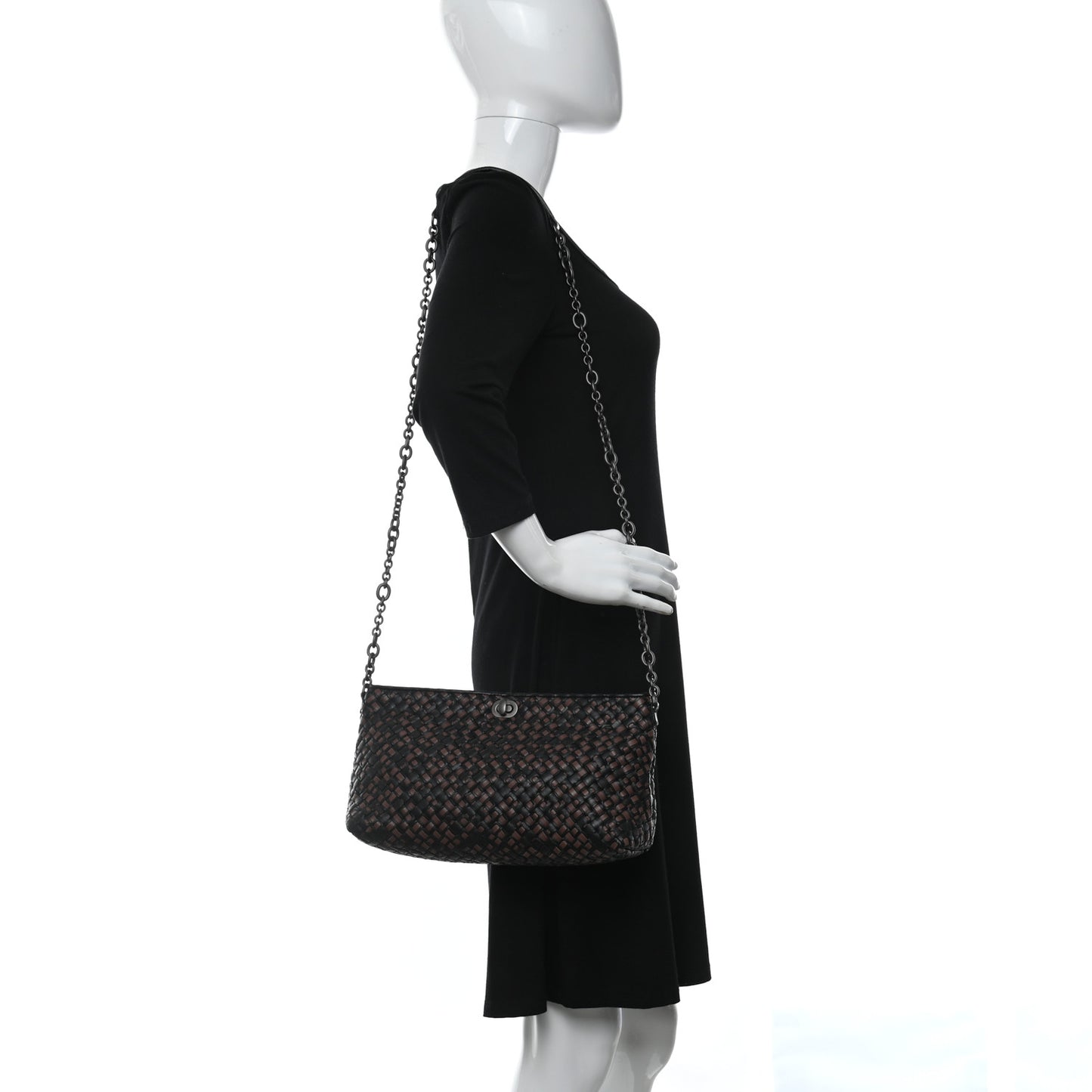 Bottega Veneta/ Bags/ Shoulder Bags /Bottega Veneta Nappa Intrecciato Chain Crossbody Black Brown