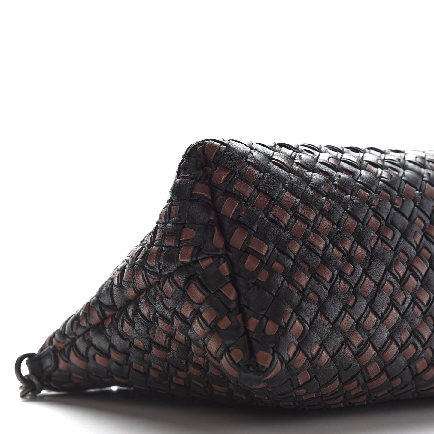 This is an authentic BOTTEGA VENETA Nappa Intrecciato Chain Crossbody in Black and Brown. This stylish shoulder bag is beautifully crafted of soft intrecciato woven nappa leather in black and brown. The shoulder bag features an adjustable cross body shoulder strap with matte gunmetal hardware and a black leather shoulder pad. The open top secures with a matte gunmetal turn lock and leads to a beige suede interior.Follow this item for alerts. Bottega Veneta is a registered trademark of Bottega Veneta. FASHIONPHILE is not affiliated with Bottega Veneta.