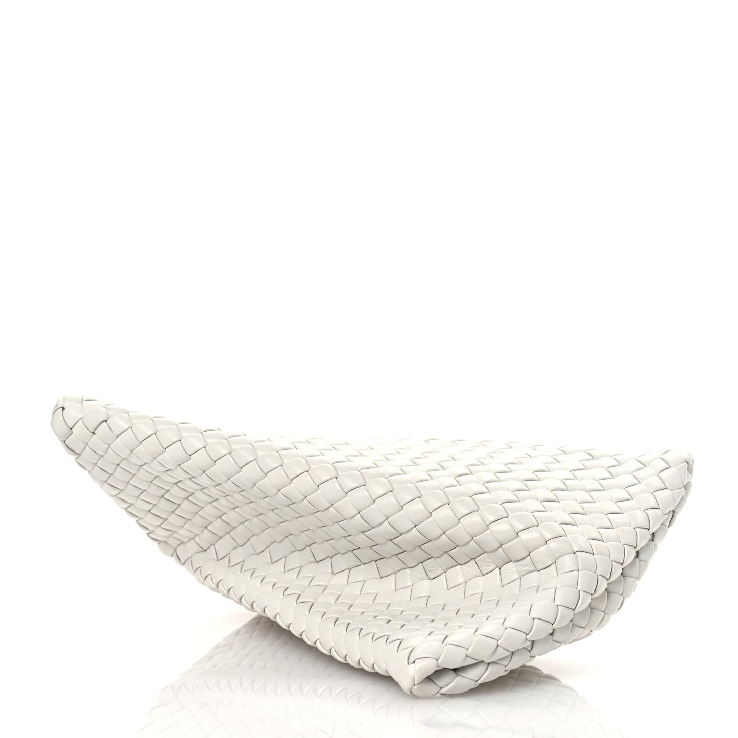 This is an authentic BOTTEGA VENETA Nappa Intrecciato Crisscross Clutch in Chalk. This sophisticated clutch is crafted of tightly woven nappa lambskin leather in white. The bag opens to a matching leather interior.Follow this item for alerts. Bottega Veneta is a registered trademark of Bottega Veneta. FASHIONPHILE is not affiliated with Bottega Veneta.