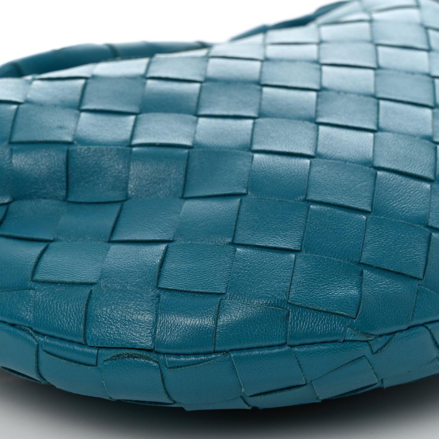 This is an authentic BOTTEGA VENETA Nappa Intrecciato Mini Jodie in Mallard. This stylish shoulder bag is beautifully crafted of soft woven lambskin leather in teal blue. The shoulder bag features a matching handle and a gold top zipper that opens to a compact leather interior.Follow this item for alerts. Bottega Veneta is a registered trademark of Bottega Veneta. FASHIONPHILE is not affiliated with Bottega Veneta.