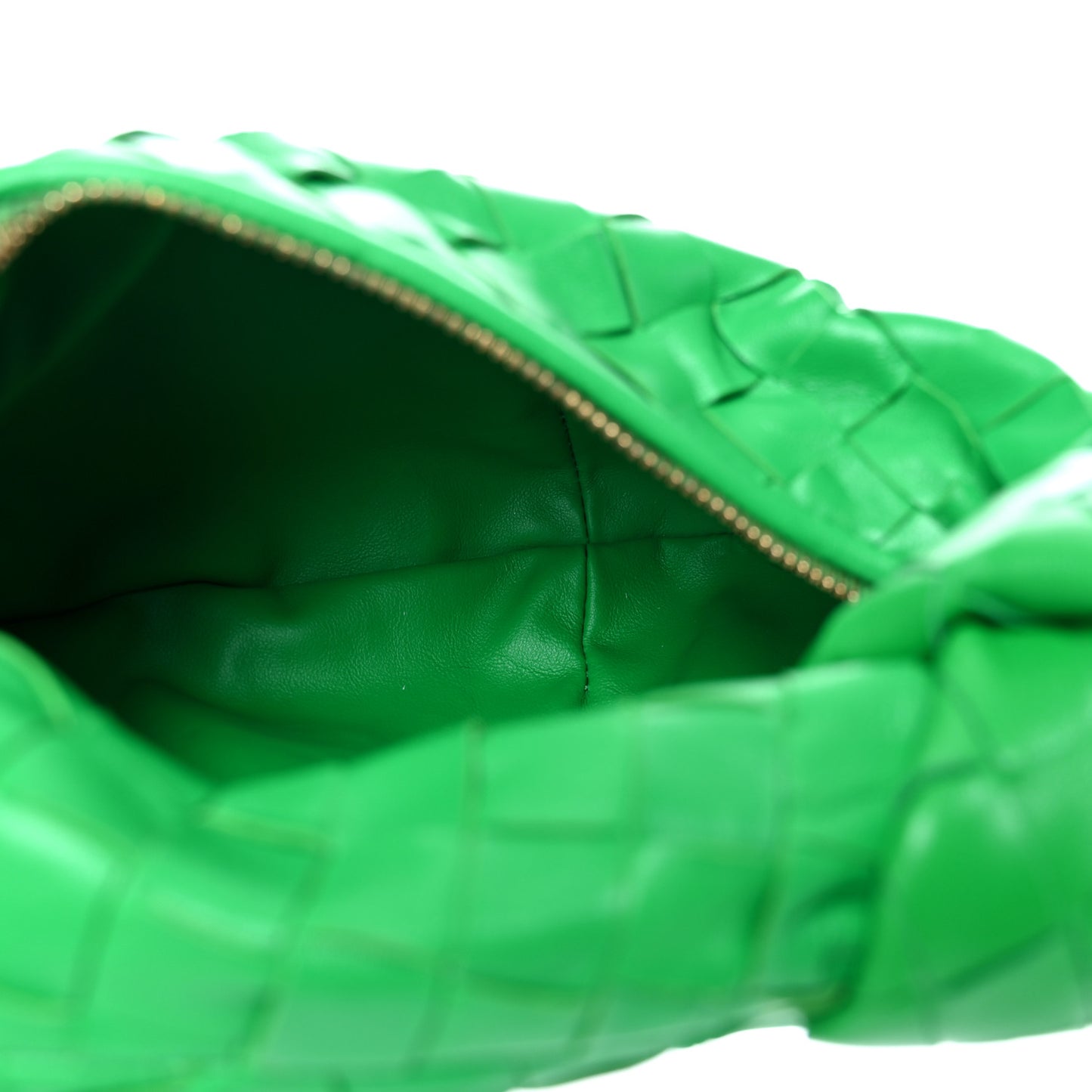This is an authentic BOTTEGA VENETA Nappa Intrecciato Mini BV Jodie in Parakeet. This stylish shoulder bag is beautifully crafted of soft woven lambskin leather in green. The shoulder bag features a matching handle and a gold top zipper that opens to a compact green leather interior.