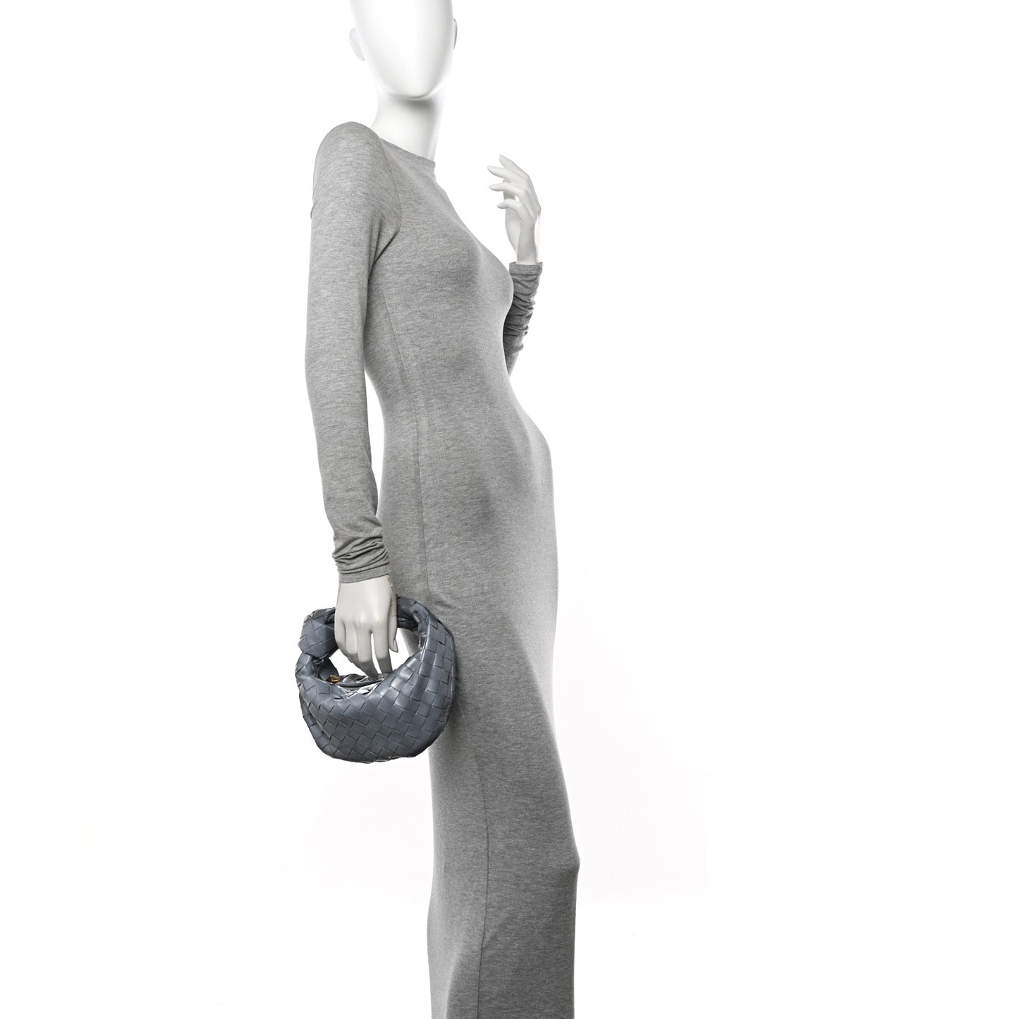 This is an authentic BOTTEGA VENETA Nappa Intrecciato Mini Jodie in Thunder. This stylish shoulder bag is beautifully crafted of soft woven lambskin leather in gray. The shoulder bag features a matching looping handle and a gold top zipper that opens to a compact matching leather interior.Follow this item for alerts. Bottega Veneta is a registered trademark of Bottega Veneta. FASHIONPHILE is not affiliated with Bottega Veneta.