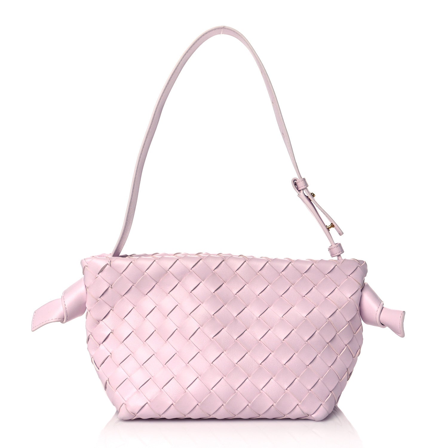This is an authentic BOTTEGA VENETA Nappa Intrecciato Tie Shoulder Bag in Bliss Washed. This stylish shoulder bag is beautifully crafted of woven lambskin leather in pink. The shoulder bag features a crossbody shoulder strap, aged gold hardware and a flap that opens to a matching pink leather interior.Follow this item for alerts. Bottega Veneta is a registered trademark of Bottega Veneta. FASHIONPHILE is not affiliated with Bottega Veneta.