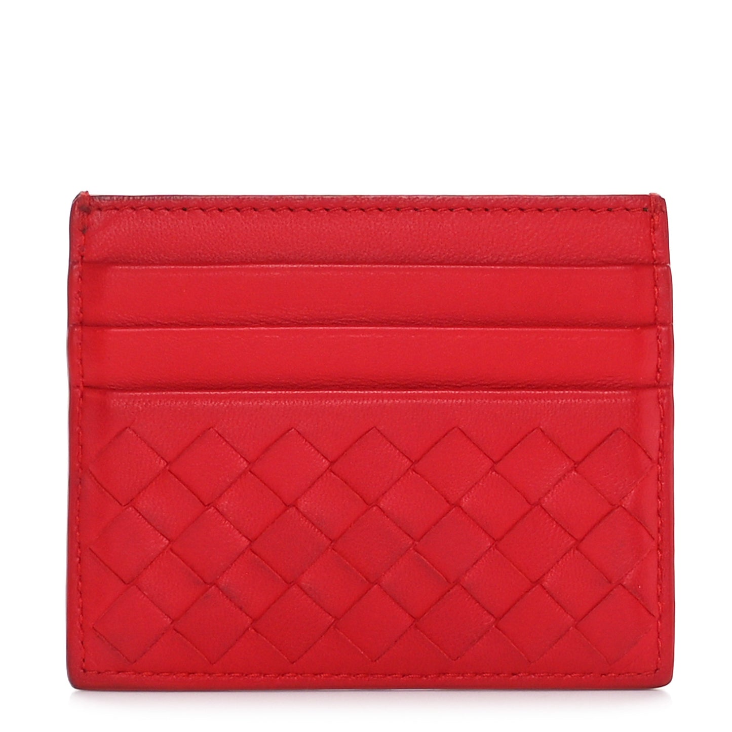 This is an authentic BOTTEGA VENETA Nappa Intrecciato Woven Card Holder in New Red. This fine and convenient case is crafted of luxurious intrecciato Nappa calfskin leather and features card slots on both sides. This is a practical accessory with the look and style only from Bottega Veneta!Follow this item for alerts. Bottega Veneta is a registered trademark of Bottega Veneta. FASHIONPHILE is not affiliated with Bottega Veneta.