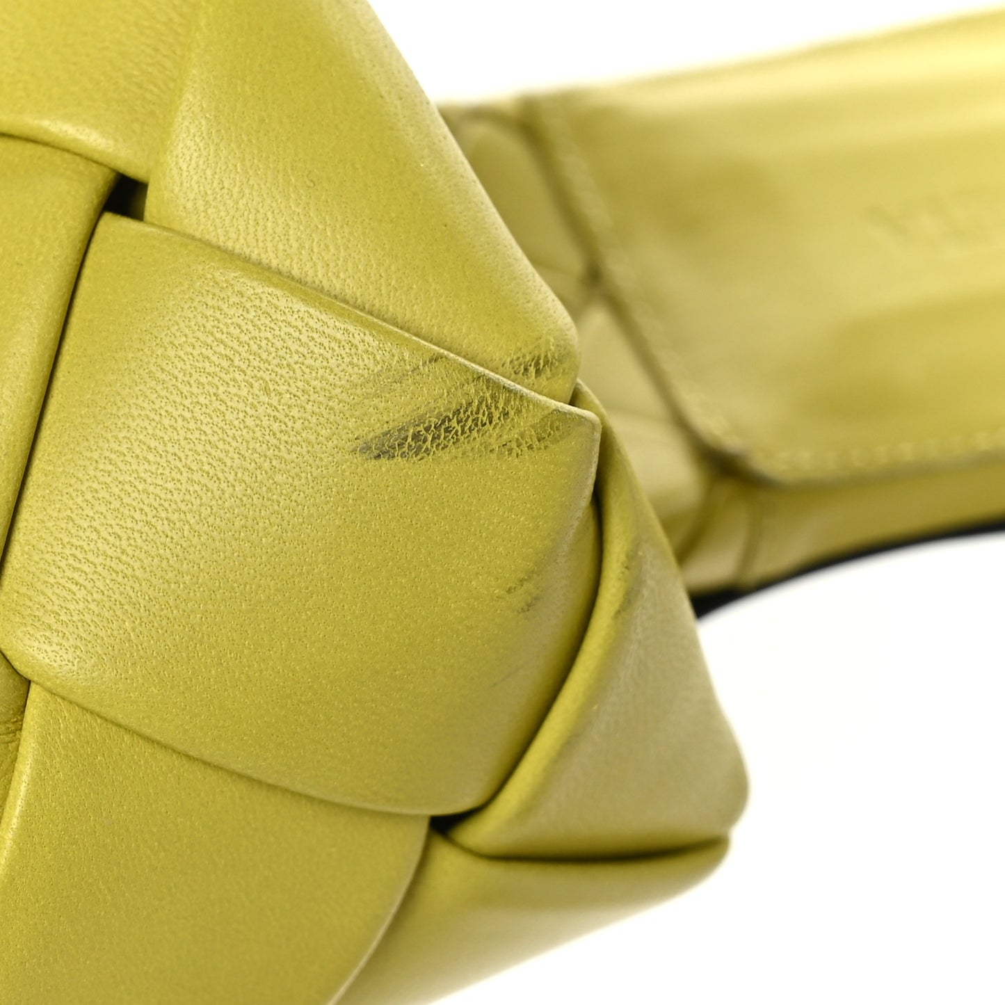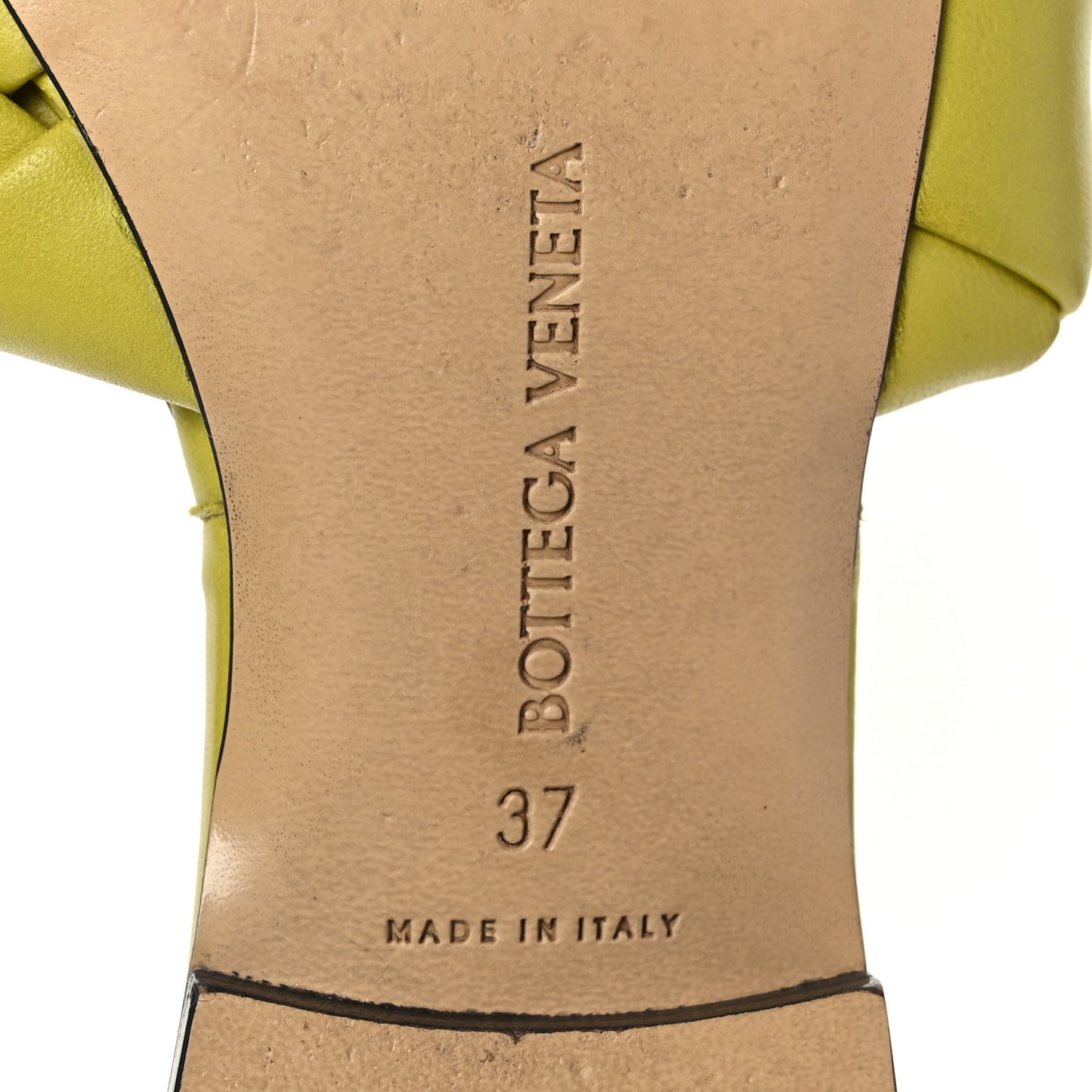 These are authentic BOTTEGA VENETA Nappa Maxi Intrecciato Lido Flat Sandals 37 in Kiwi. These stunning sandals are crafted of woven lambskin leather in yellow and feature an elongated square open toe.Follow this item for alerts. Bottega Veneta is a registered trademark of Bottega Veneta. FASHIONPHILE is not affiliated with Bottega Veneta.