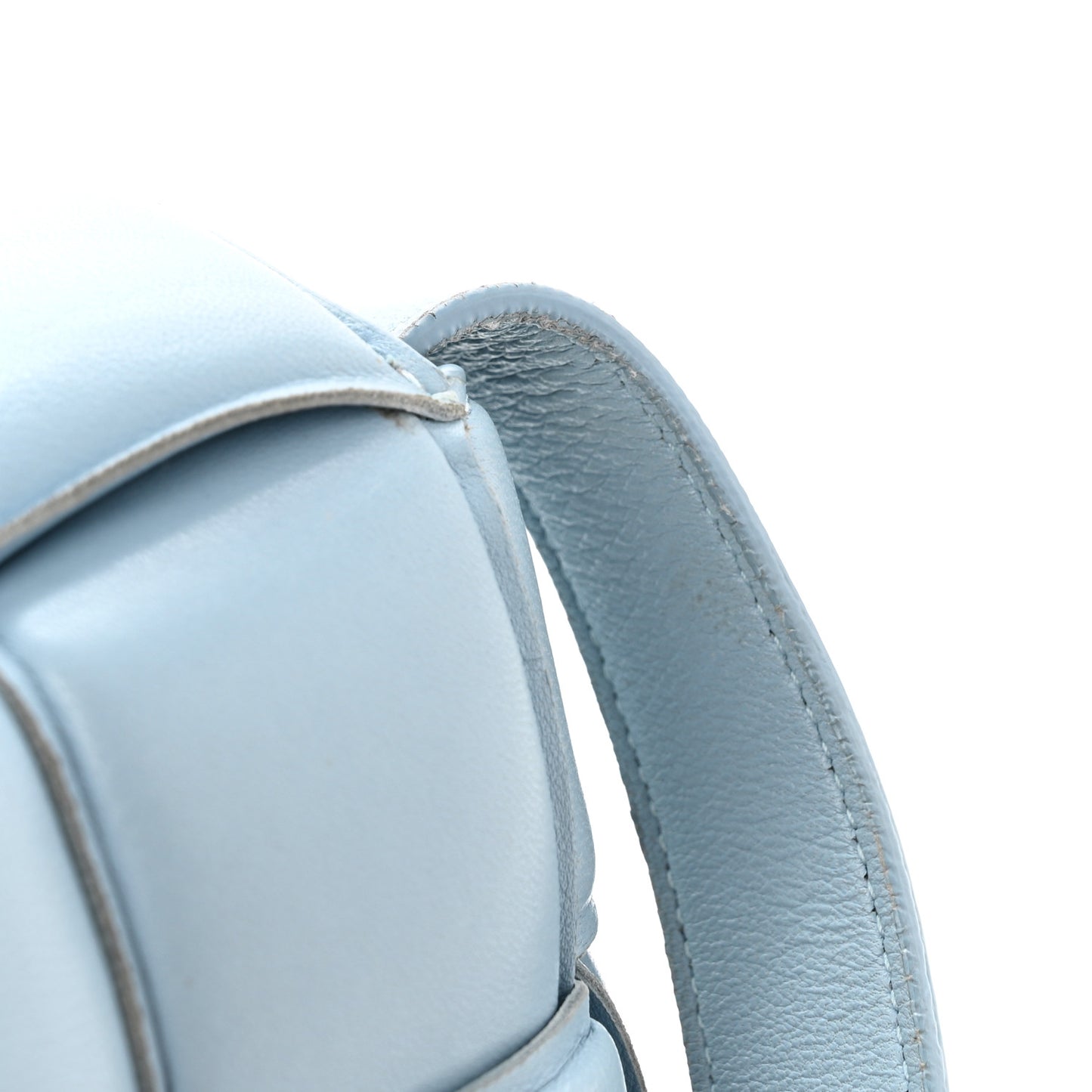 This is an authentic BOTTEGA VENETA Nappa Maxi Intrecciato Padded Cassette Crossbody Bag in Ice. This stylish shoulder bag is crafted of soft calfskin leather in blue. The bag features an adjustable leather shoulder strap and opens to a blue nappa leather interior with a hanging zipper pocket.Follow this item for alerts. Bottega Veneta is a registered trademark of Bottega Veneta. FASHIONPHILE is not affiliated with Bottega Veneta.