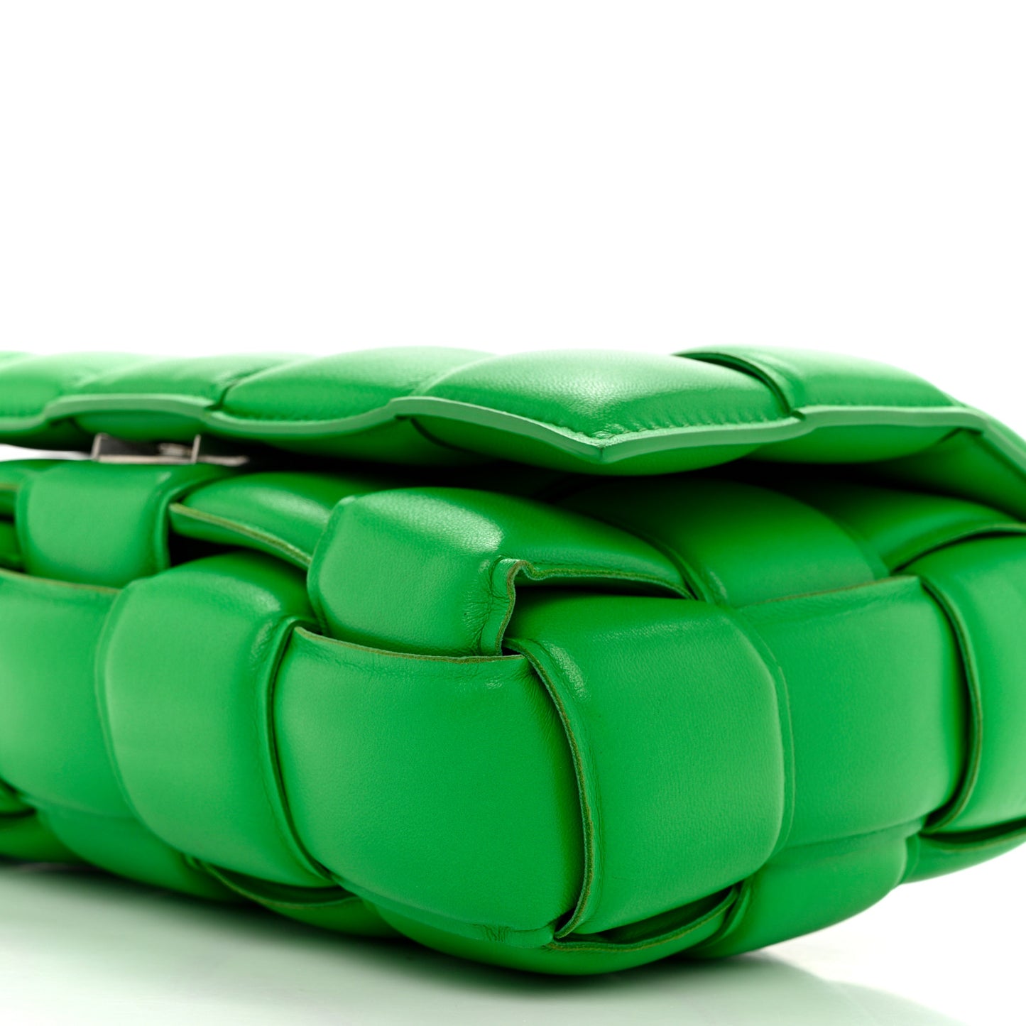 This is an authentic BOTTEGA VENETA Nappa Maxi Intreccio Padded Cassette Crossbody Bag in Parakeet. This stylish shoulder bag is crafted of soft padded and woven nappa leather in green. The bag features an adjustable leather shoulder strap, silver hardware including the push lock that opens the front flap to a matching leather interior with a zipper pocket.Follow this item for alerts. Bottega Veneta is a registered trademark of Bottega Veneta. FASHIONPHILE is not affiliated with Bottega Veneta.