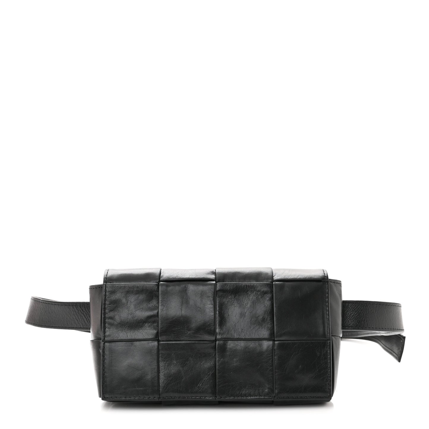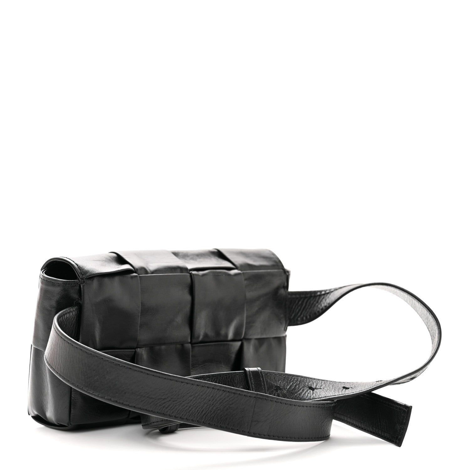 Paper Calfskin Intrecciato Cassette Belt Bag Black