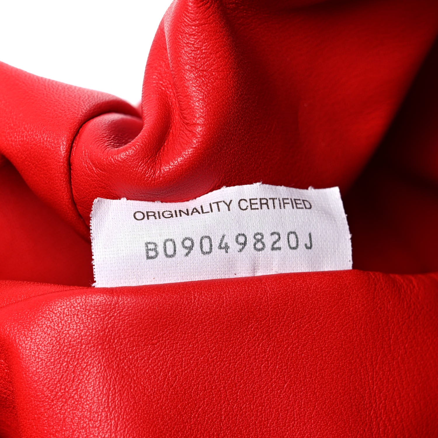 This is an authentic BOTTEGA VENETA Smooth Butter Calf The Pouch Oversized Clutch in Bright Red. This stylish clutch is crafted of calfskin leather in red. The bag features a ruched leather magnetic top opening that opens to a matching leather interior.