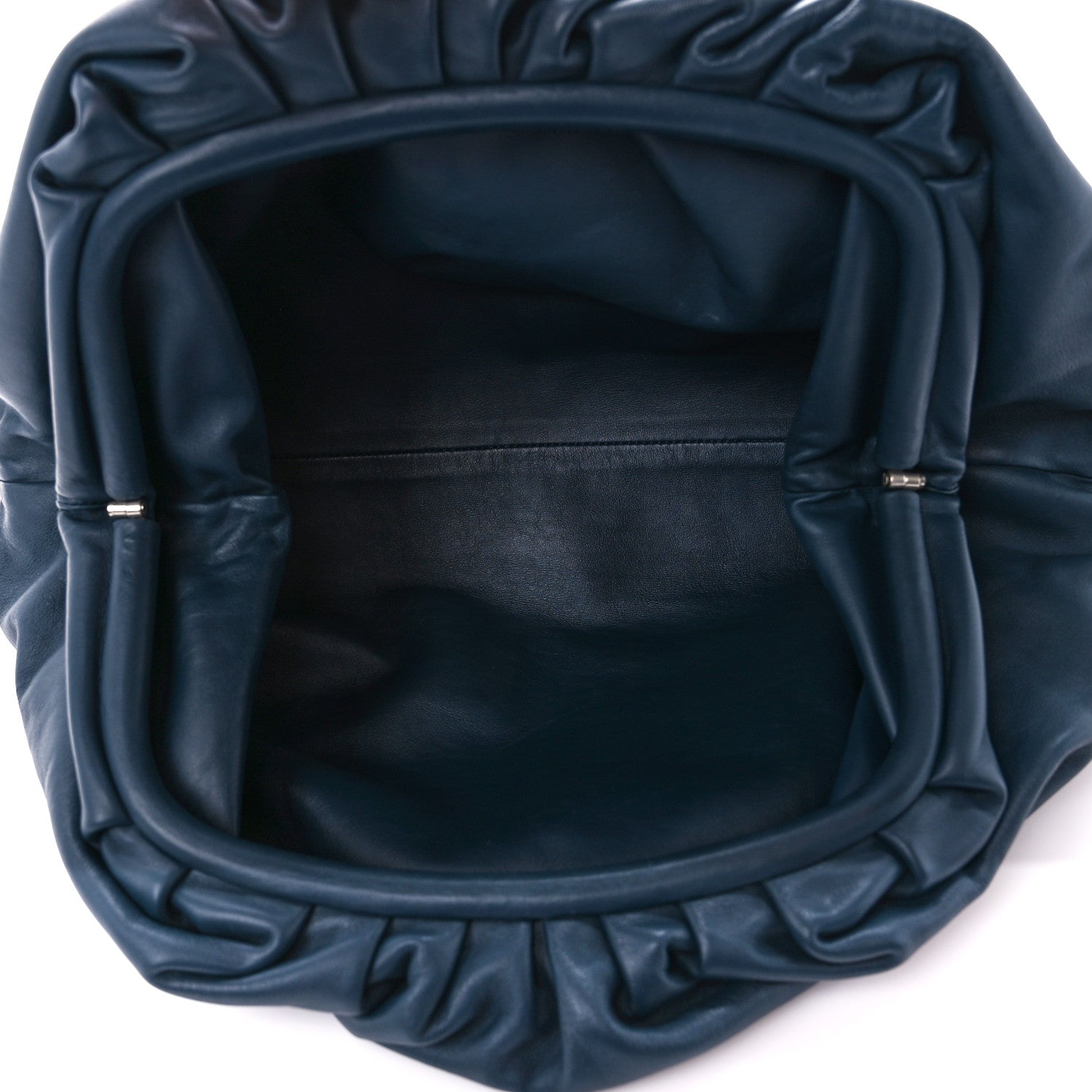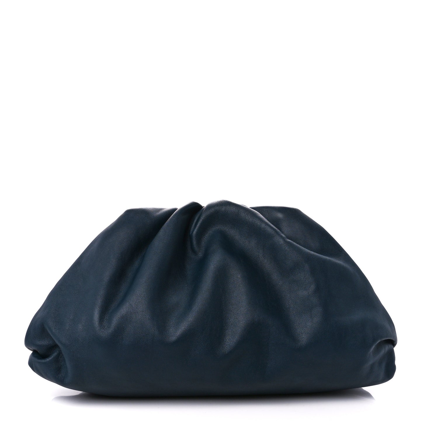 This is an authentic BOTTEGA VENETA Smooth Butter Calf The Pouch Oversized Clutch in Deep Blue. This stylish clutch is crafted of calfskin leather in dark blue. The bag features a ruched leather magnetic top frame that opens to a matching leather interior.Follow this item for alerts. Bottega Veneta is a registered trademark of Bottega Veneta. FASHIONPHILE is not affiliated with Bottega Veneta.