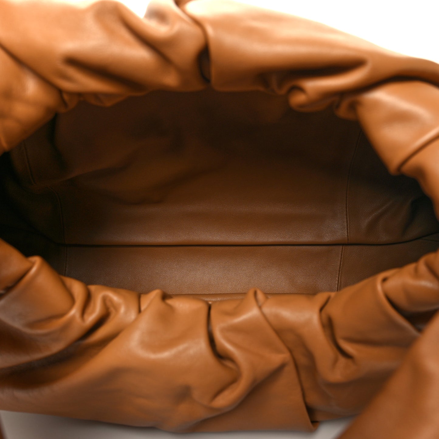 This is an authentic BOTTEGA VENETA Smooth Butter Calfskin Large The Shoulder Pouch in Cammello. This stylish clutch is crafted of calfskin leather in brown. The bag features a ruched leather magnetic top that opens to a matching leather interior and looping top handle.Follow this item for alerts. Bottega Veneta is a registered trademark of Bottega Veneta. FASHIONPHILE is not affiliated with Bottega Veneta.