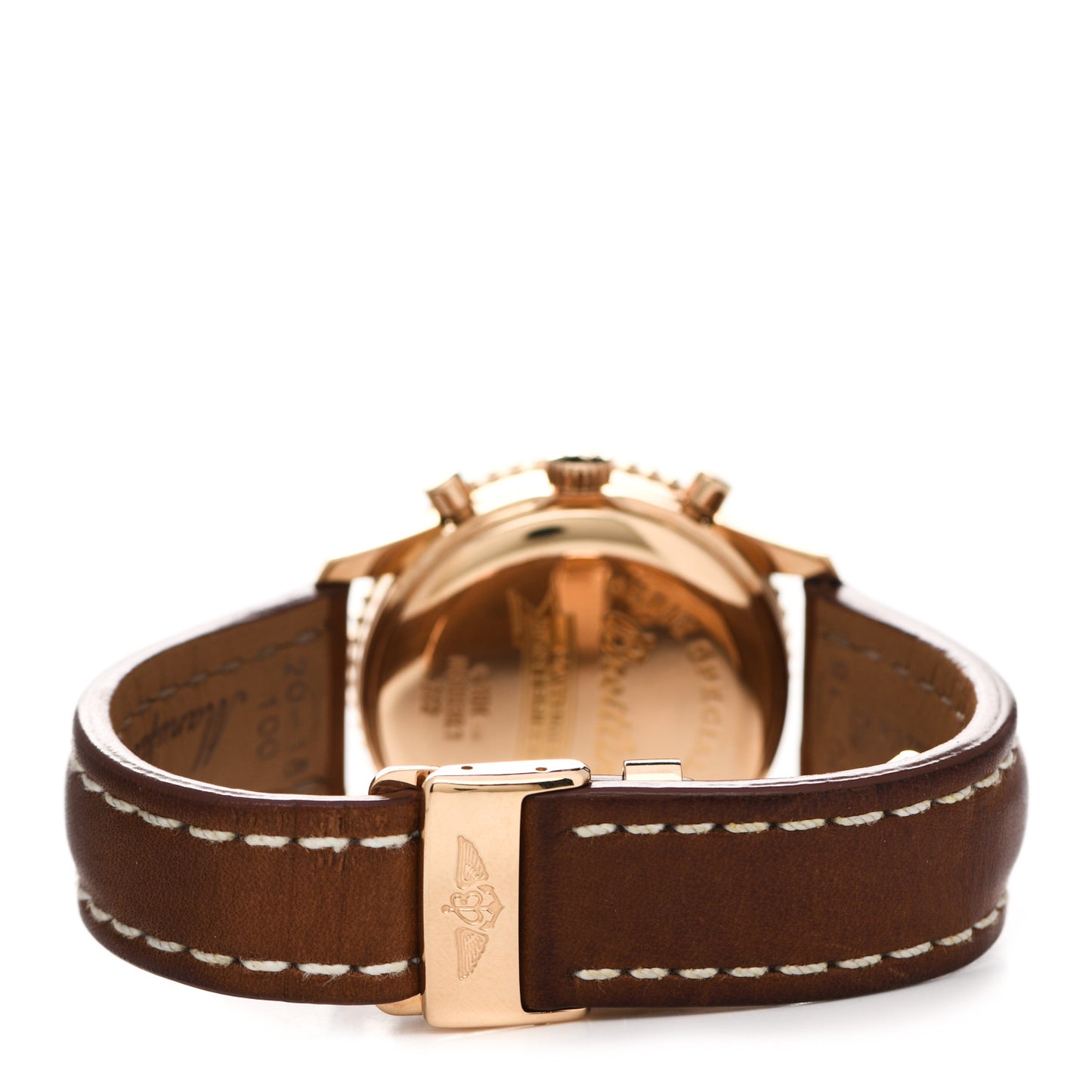 Breitling/ Watches/Breitling 18K Rose Gold Calfskin 38mm Navitimer Montbrillant Chronograph Automatic Watch Black H30030.1