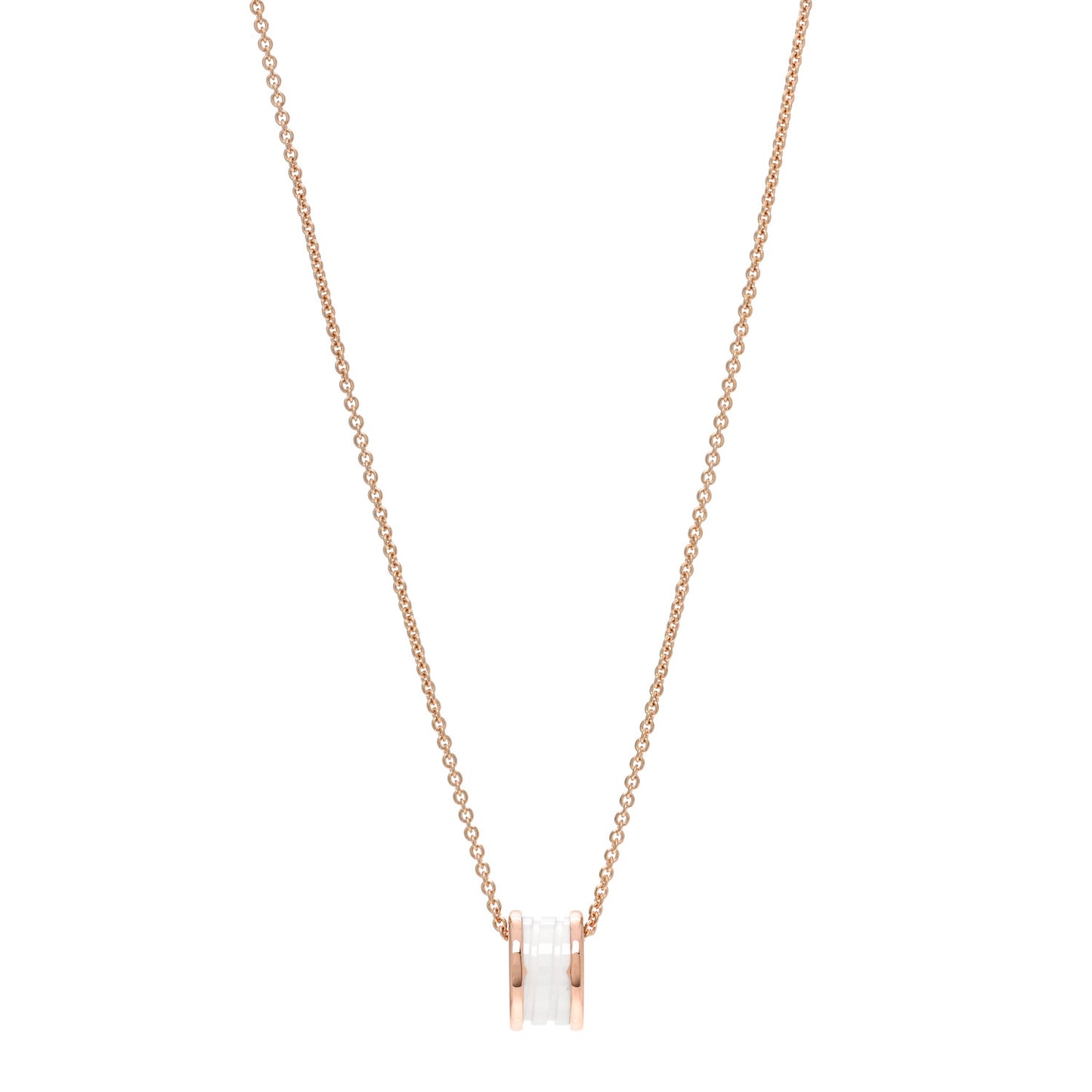 18K Rose Gold White Ceramic B.Zero1 Pendant Necklace
