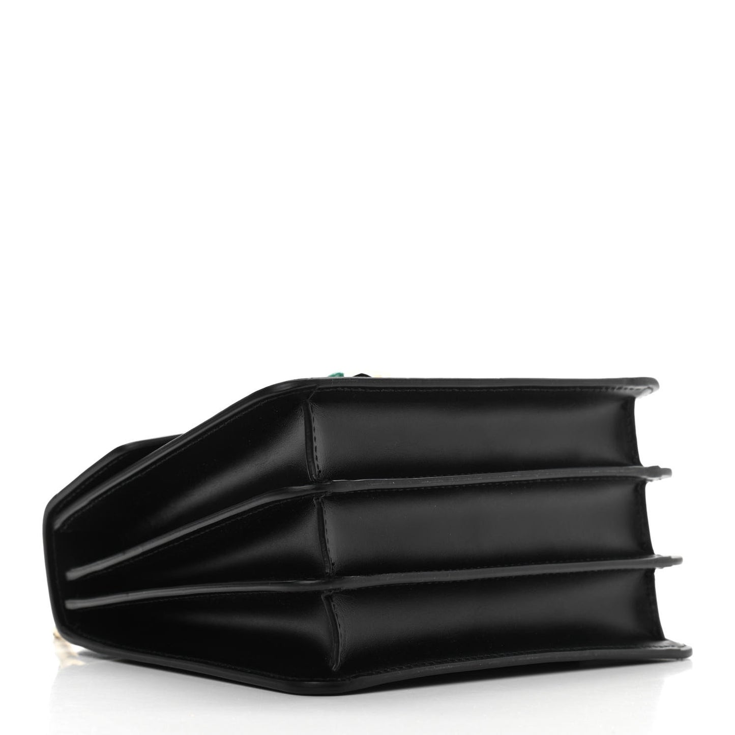This is an authentic BULGARI Calfskin Serpenti Forever Top Handle in Black. This striking bag is crafted of calfskin leather in black and features a front flap with an enameled snake head closure, light gold hardware, and an adjustable shoulder strap. The flap opens to a green fabric interior with a pocket.Follow this item for alerts. Bulgari is a registered trademark of Bulgari. FASHIONPHILE is not affiliated with Bulgari.