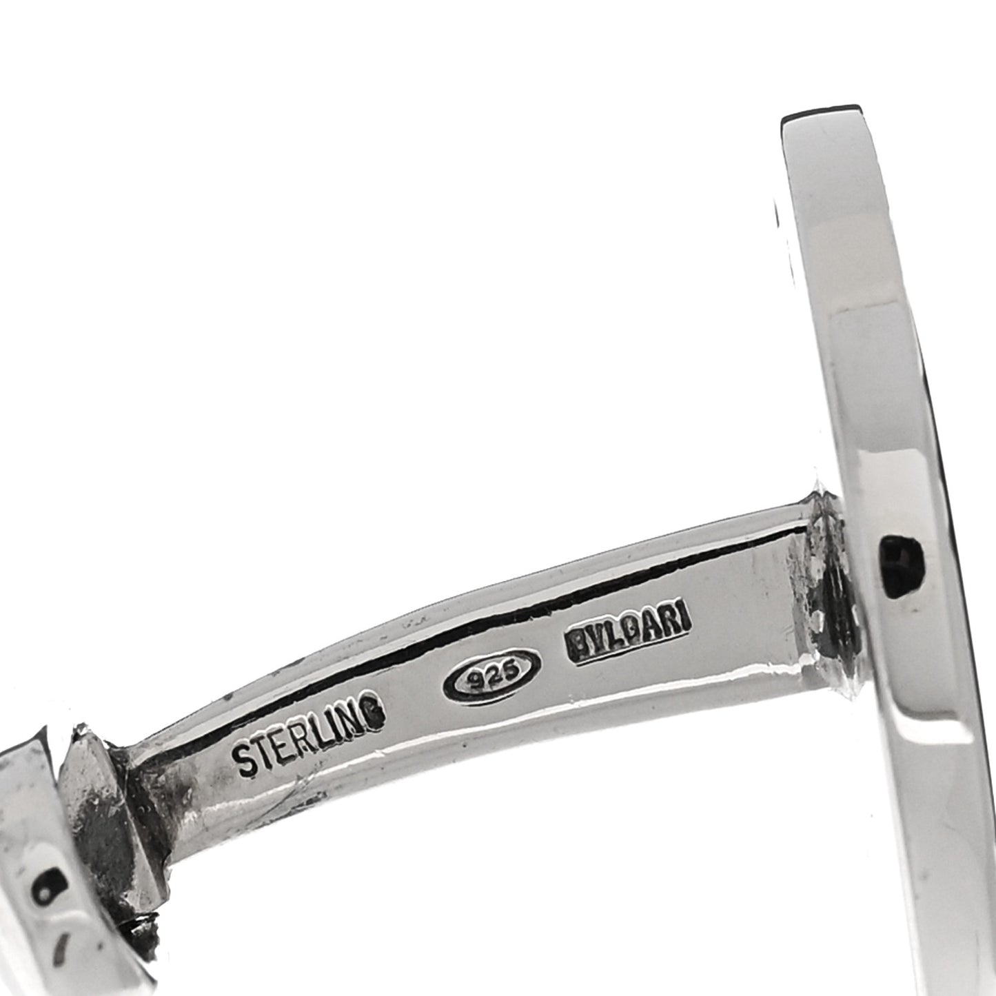 This is an authentic pair of BULGARI Sterling Silver Black Onyx Cufflinks. The cufflinks are crafted of sterling silver and feature round motifs set with black onyx and accented with the Bulgari logo.Follow this item for alerts. Bulgari is a registered trademark of Bulgari. FASHIONPHILE is not affiliated with Bulgari.