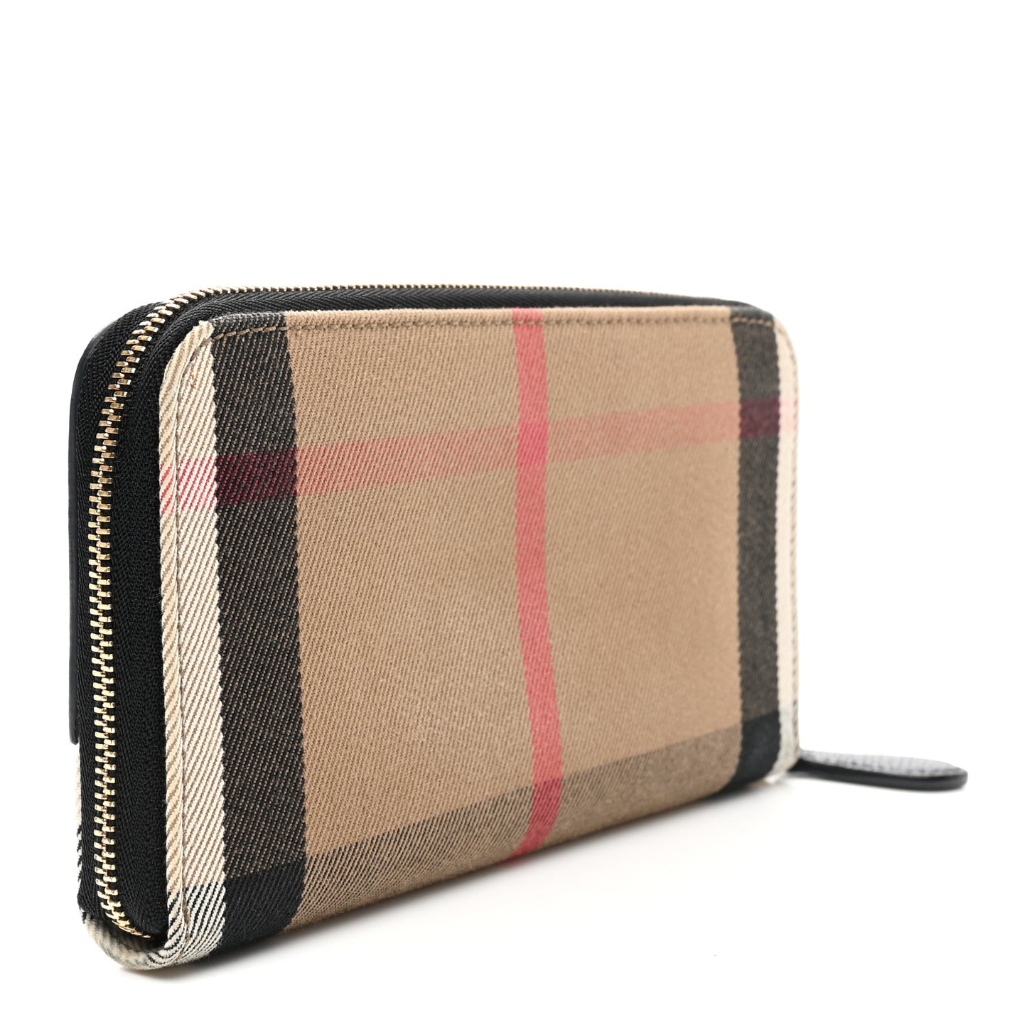 Burberry/ Accessories/ Wallets /Burberry Calfskin House Check Elmore Zip Around Wallet Black