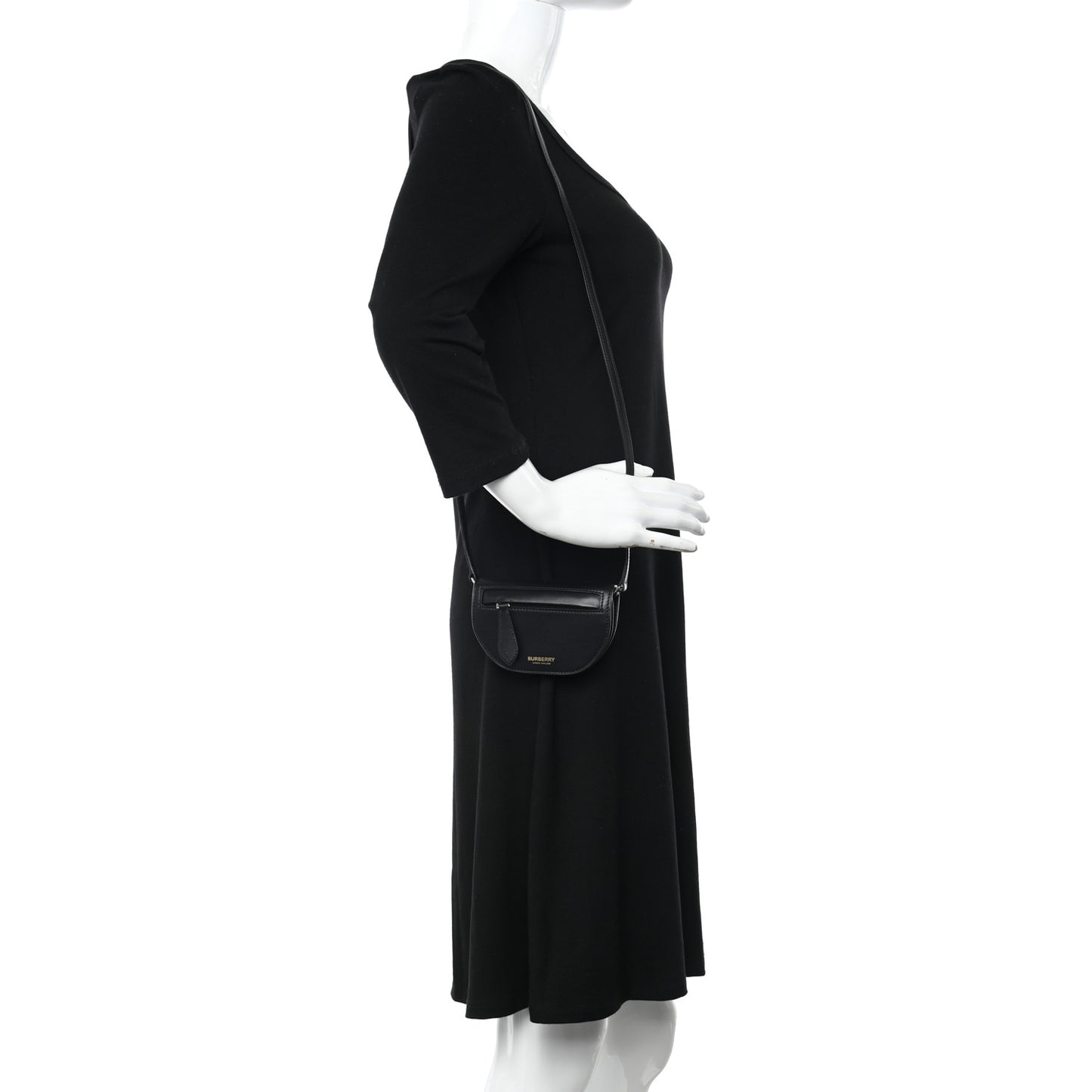 This is an authentic BURBERRY Calfskin Micro Olympia Card Case in Black. This petite bag is crafted in smooth black calfskin leather. It features a detachable shoulder strap, a front zipper and a gold Burberry logo on the cross over flap. It opens to a matching leather interior with a card slot.Follow this item for alerts. Burberry is a registered trademark of Burberry. FASHIONPHILE is not affiliated with Burberry.