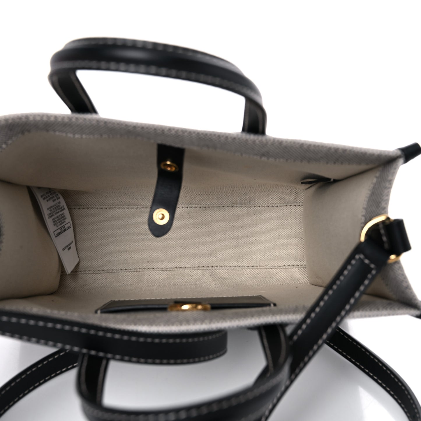Canvas Smooth Calfskin Mini Two Tone Freya Tote Black