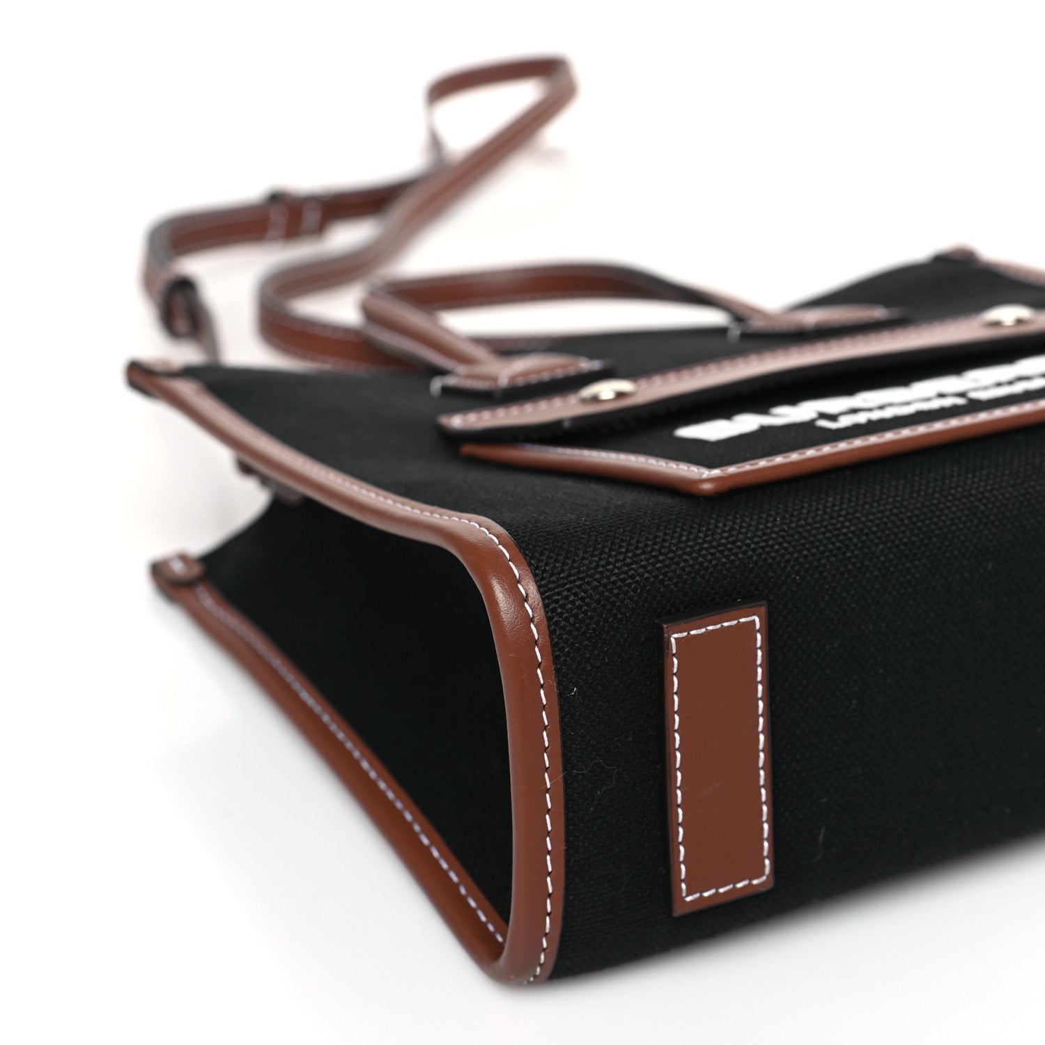 Burberry/ Bags/ Shoulder Bags /Burberry Canvas Smooth Calfskin Mini Two Tone Freya Tote Black Tan