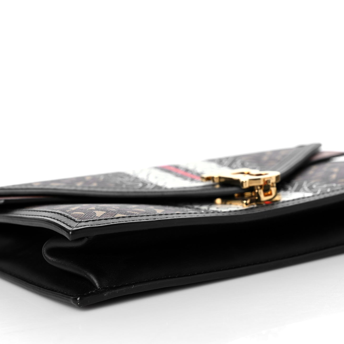 E-Canvas Monogram Stripe Small TB Envelope Clutch Bridle Brown