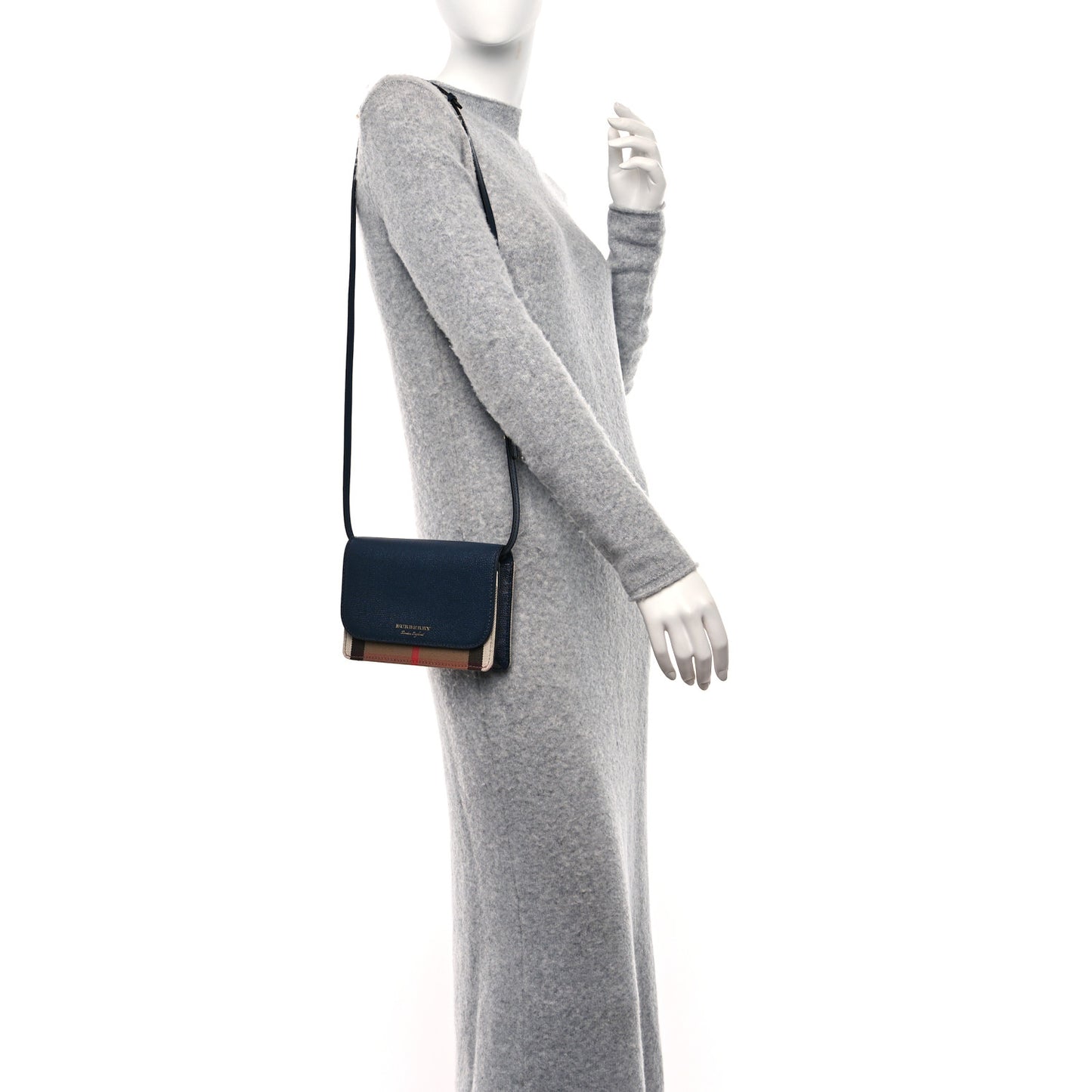 Burberry/ Bags/ Shoulder Bags /Burberry Derby Calfskin House Check Mini Hampshire Wallet On Chain Ink Blue