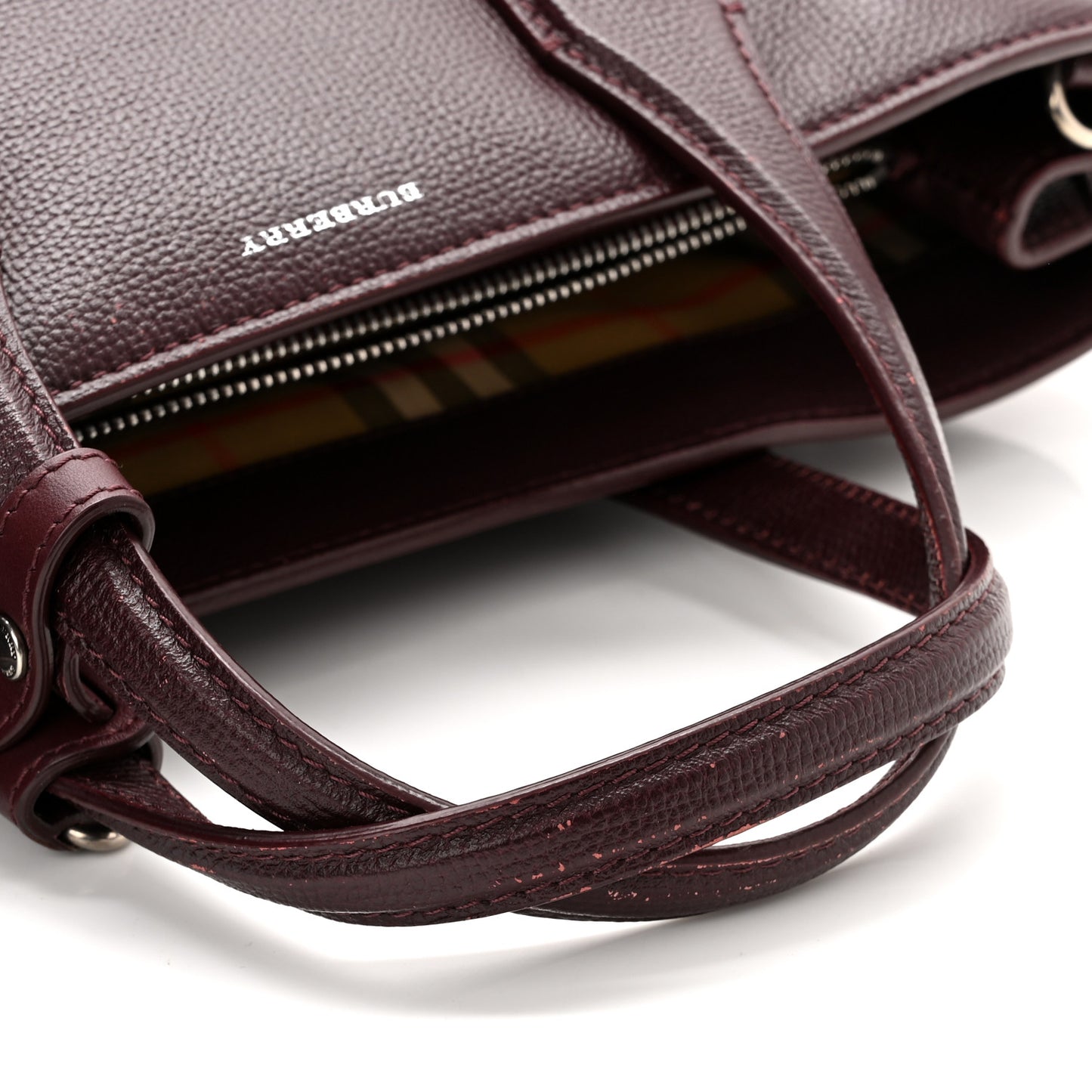 This is an authentic BURBERRY Grainy Calfskin House Check Medium Banner Tote in Mahogany Red. This stylish tote is crafted of finely grained calfskin leather in burgundy. The shoulder bag features rolled leather top handles and polished silver clasps. The top is open to a checkered fabric interior with zipper and patch pockets.Follow this item for alerts. Burberry is a registered trademark of Burberry. FASHIONPHILE is not affiliated with Burberry.