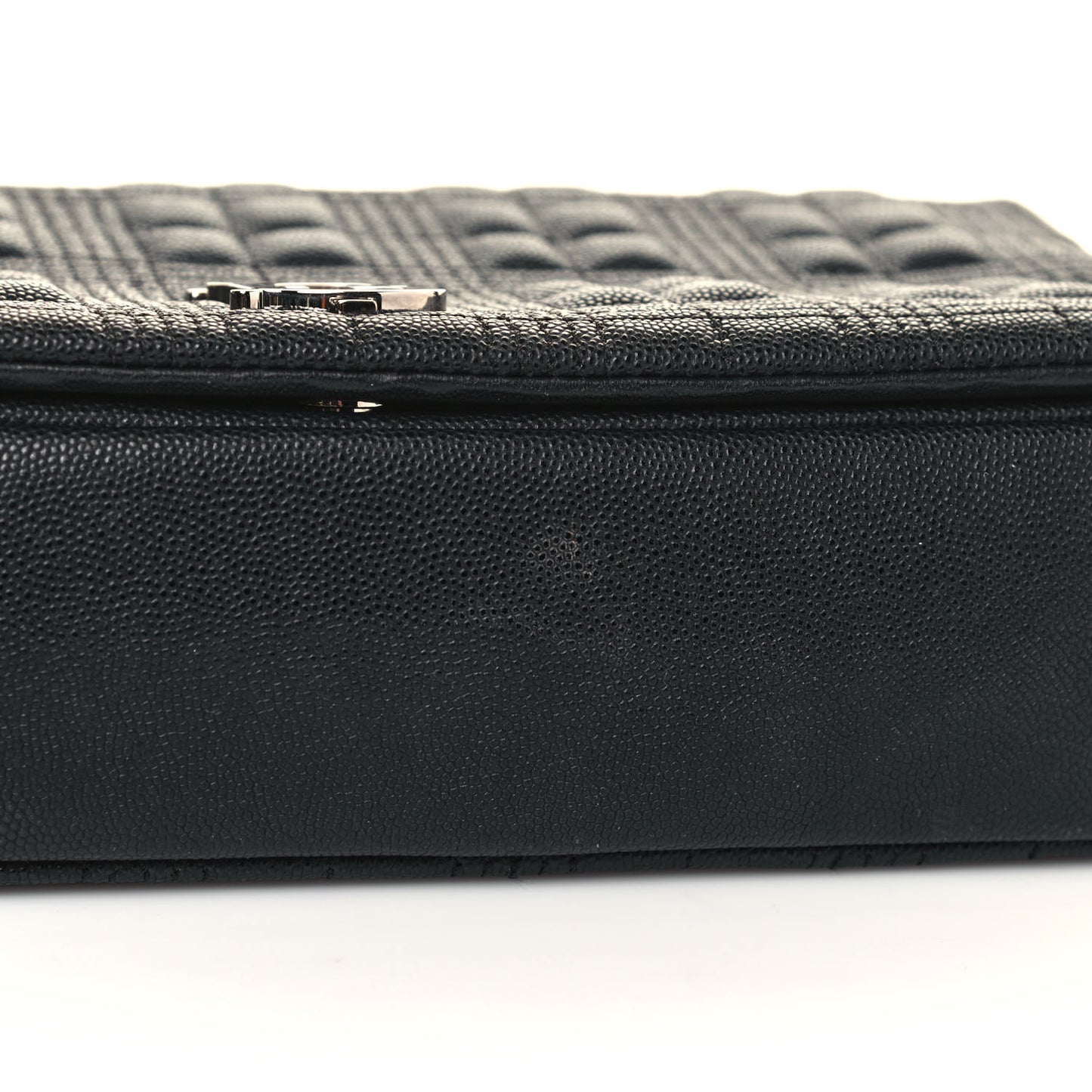 Grained Calfskin Quilted CC Box Clutch With Chain Black