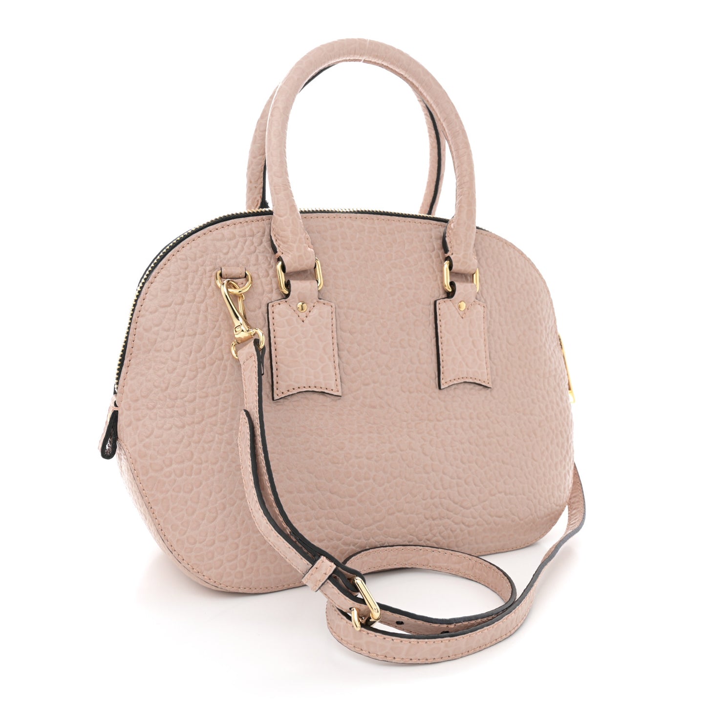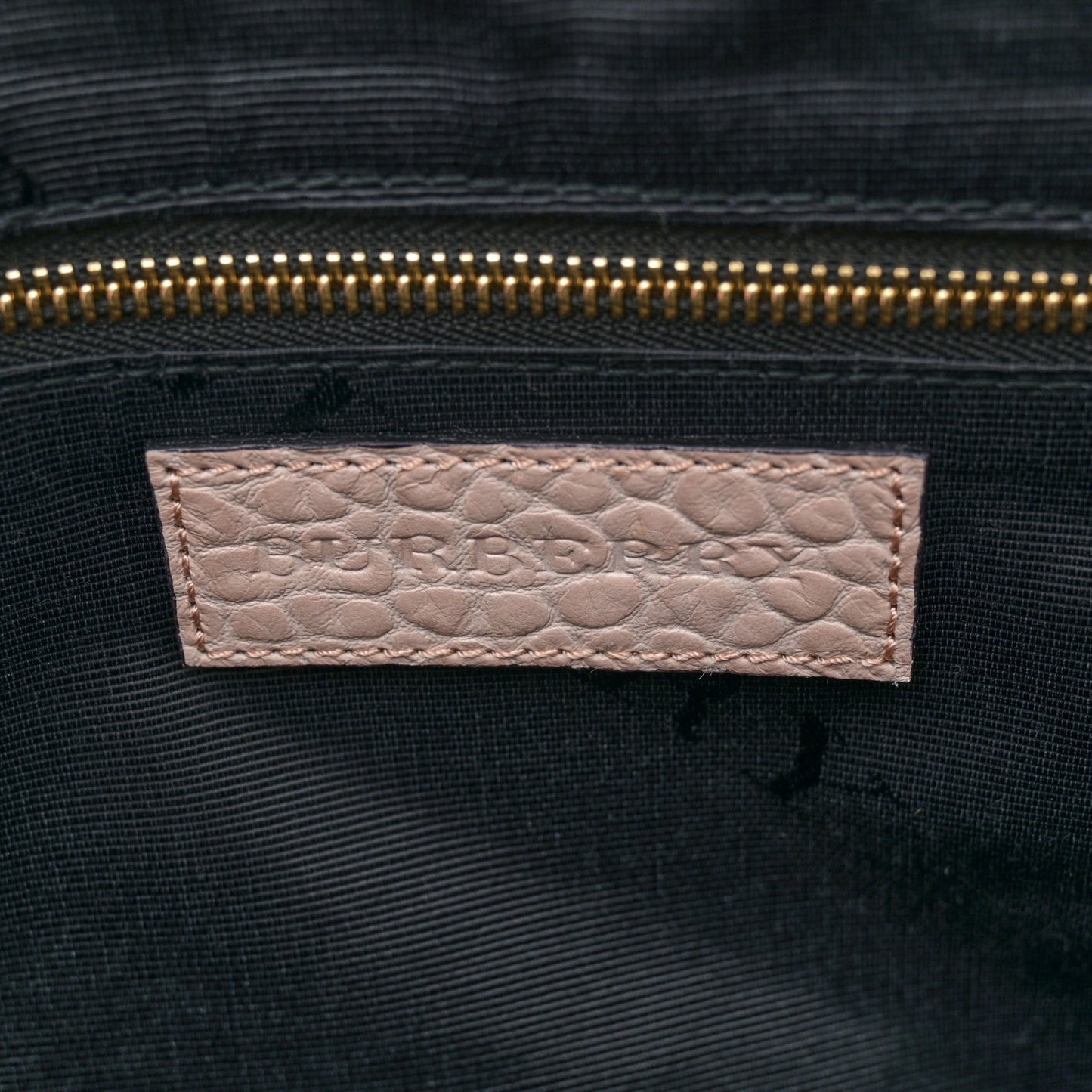 This is an authentic BURBERRY Heritage Grain Small Orchard Bowling Bag in Nude. This highly structured leather tote in a shade of nude features hand-rolled top handles and a polished brass double wrap-around zipper. This tote also includes an optional shoulder strap that is adjustable to be the perfect fit. The interior is lined with black fabric and features zipper and patch pockets. Show off your individuality with this one-of-a-kind statement bag, from the house of Burberry!Follow this item for alerts. Burberry is a registered trademark of Burberry. FASHIONPHILE is not affiliated with Burberry.