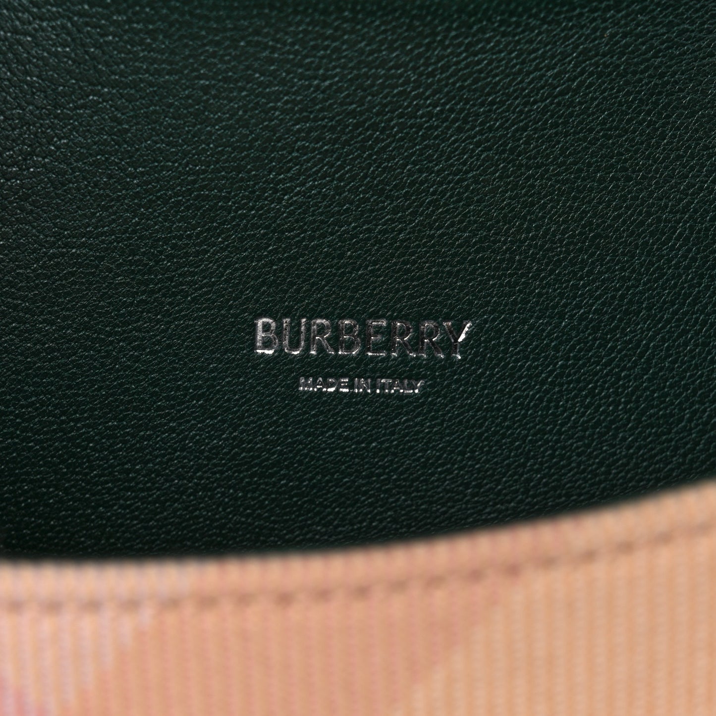 This is an authentic BURBERRY Jacquard Check Mini Rocking Horse Crossbody in Peach. The bag is made of light orange canvas and has a leather cross body strap with polished hardware. This unique shoulder bag opens with a front flap to a smooth green leather interior.Follow this item for alerts. Burberry is a registered trademark of Burberry. FASHIONPHILE is not affiliated with Burberry.
