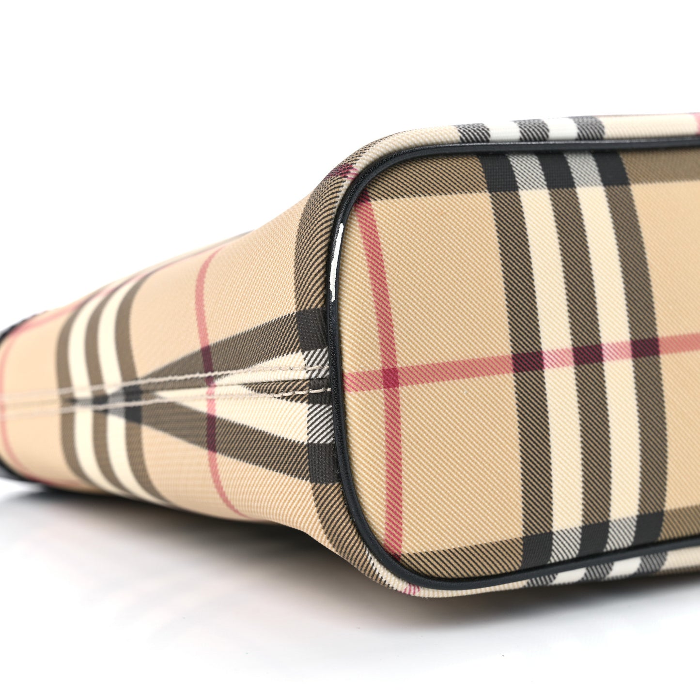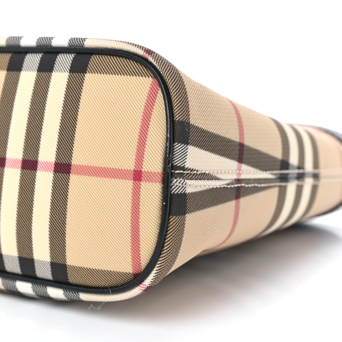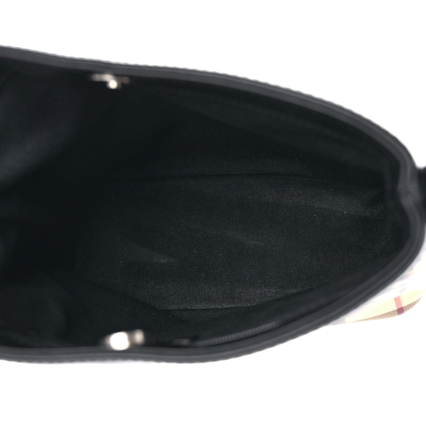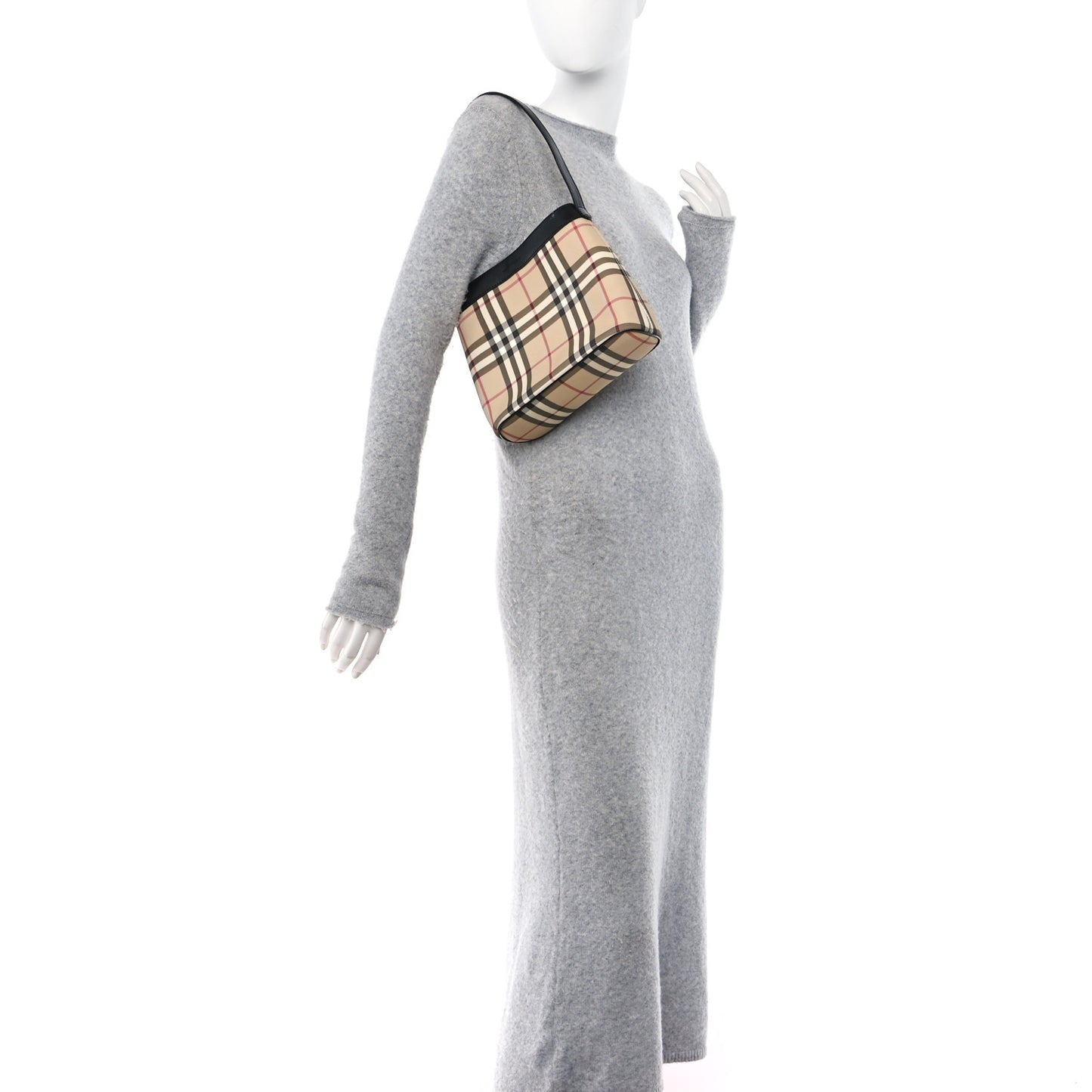 This is an authentic BURBERRY Prorsum House Check Shoulder Bag in Black. This chic bag is crafted of classic house check coated canvas. The bag features black leather trim, and a black leather shoulder strap. The top opens to a compact black fabric interior with a zipper pocket.Follow this item for alerts. Burberry is a registered trademark of Burberry. FASHIONPHILE is not affiliated with Burberry.