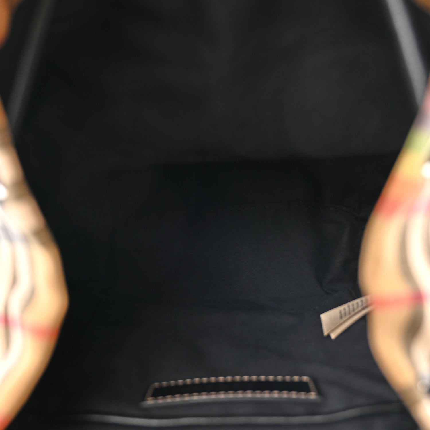 This is an authentic BURBERRY Vintage Rainbow Check Small Rucksack Backpack Antique in Yellow. This chic backpack is crafted of classic Burberry checkered canvas. The bag features black leather trim, adjustable black nylon straps, a front zipper pocket, two side zipper pockets, and silver hardware. The front flap opens to a cinch cord with black fabric interior interior with a patch pocket.Follow this item for alerts. Burberry is a registered trademark of Burberry. FASHIONPHILE is not affiliated with Burberry.
