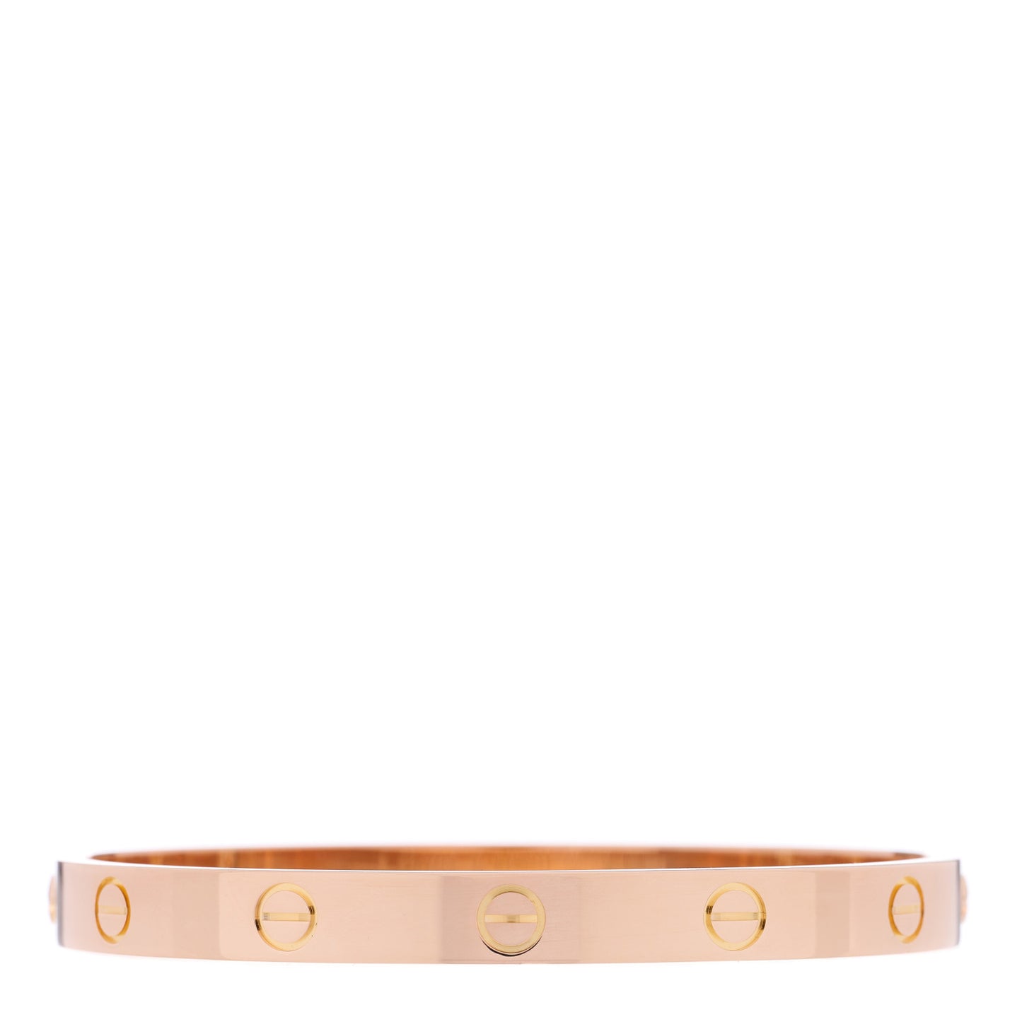 This is an authentic CARTIER 18K Pink Gold LOVE Bracelet size 17. Part of Cartier’s classic LOVE collection, this stunning 18 karat pink gold bracelet features the signature engraved LOVE motif throughout the band. The bracelet also features the new Cartier screw system that prevents the loss of the screws when opening the bangle.Follow this item for alerts. Cartier is a registered trademark of Cartier. FASHIONPHILE is not affiliated with Cartier.