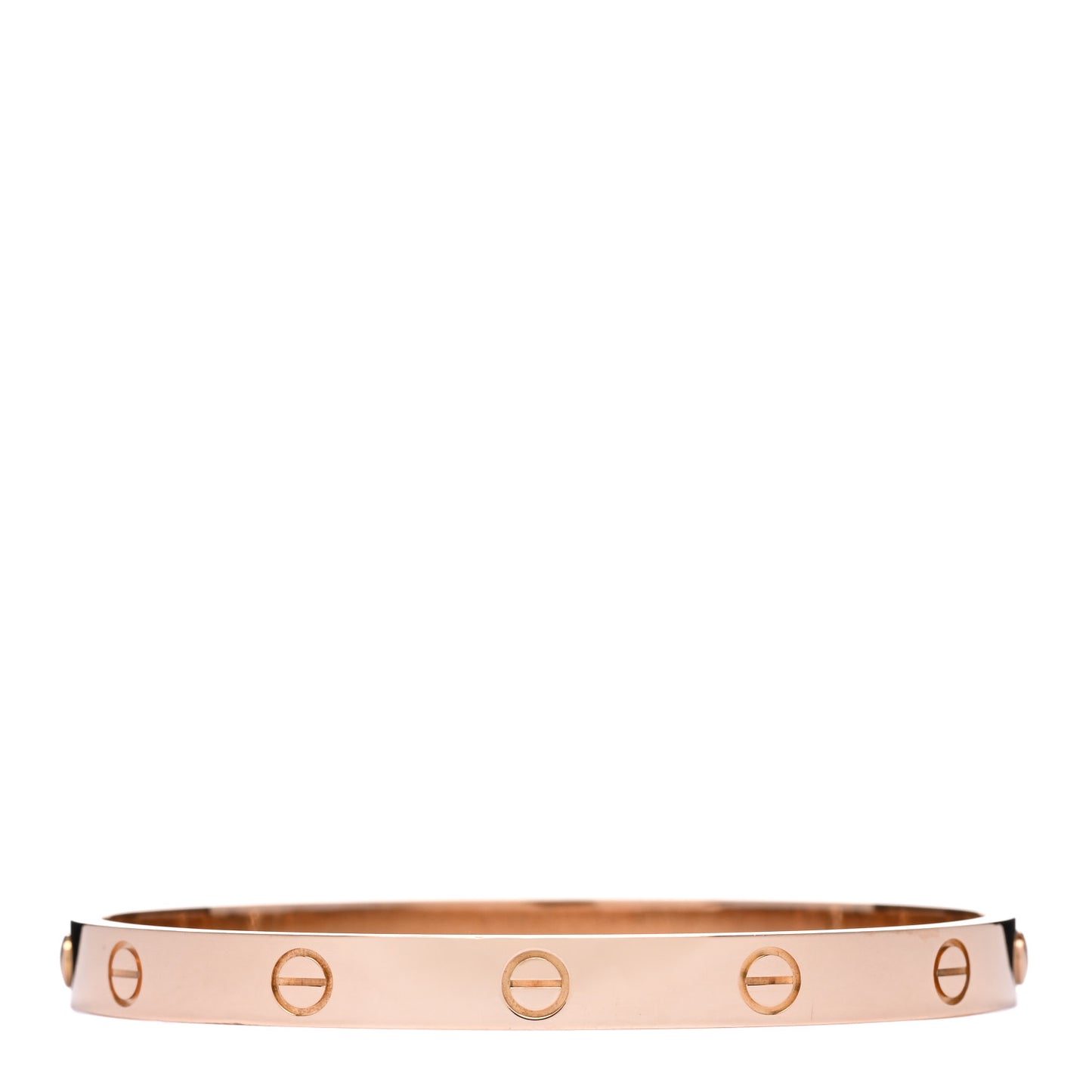 This is an authentic CARTIER 18K Pink Gold LOVE Bracelet size 18. Part of Cartier's classic LOVE collection, this stunning 18 karat pink gold bracelet features the signature Cartier screw motif engraved throughout the band. The bracelet also features the original Cartier screw system that enables the screws to be completely removed.Follow this item for alerts. Cartier is a registered trademark of Cartier. FASHIONPHILE is not affiliated with Cartier.