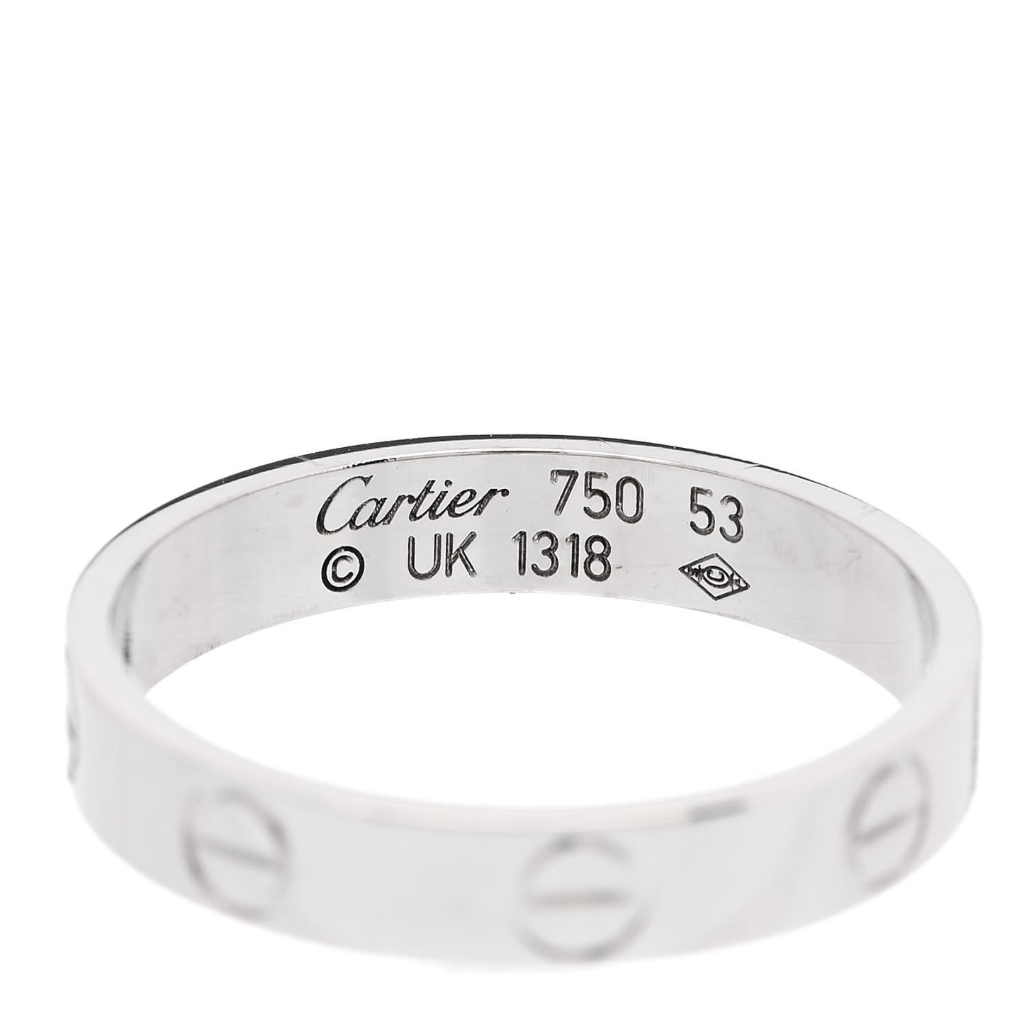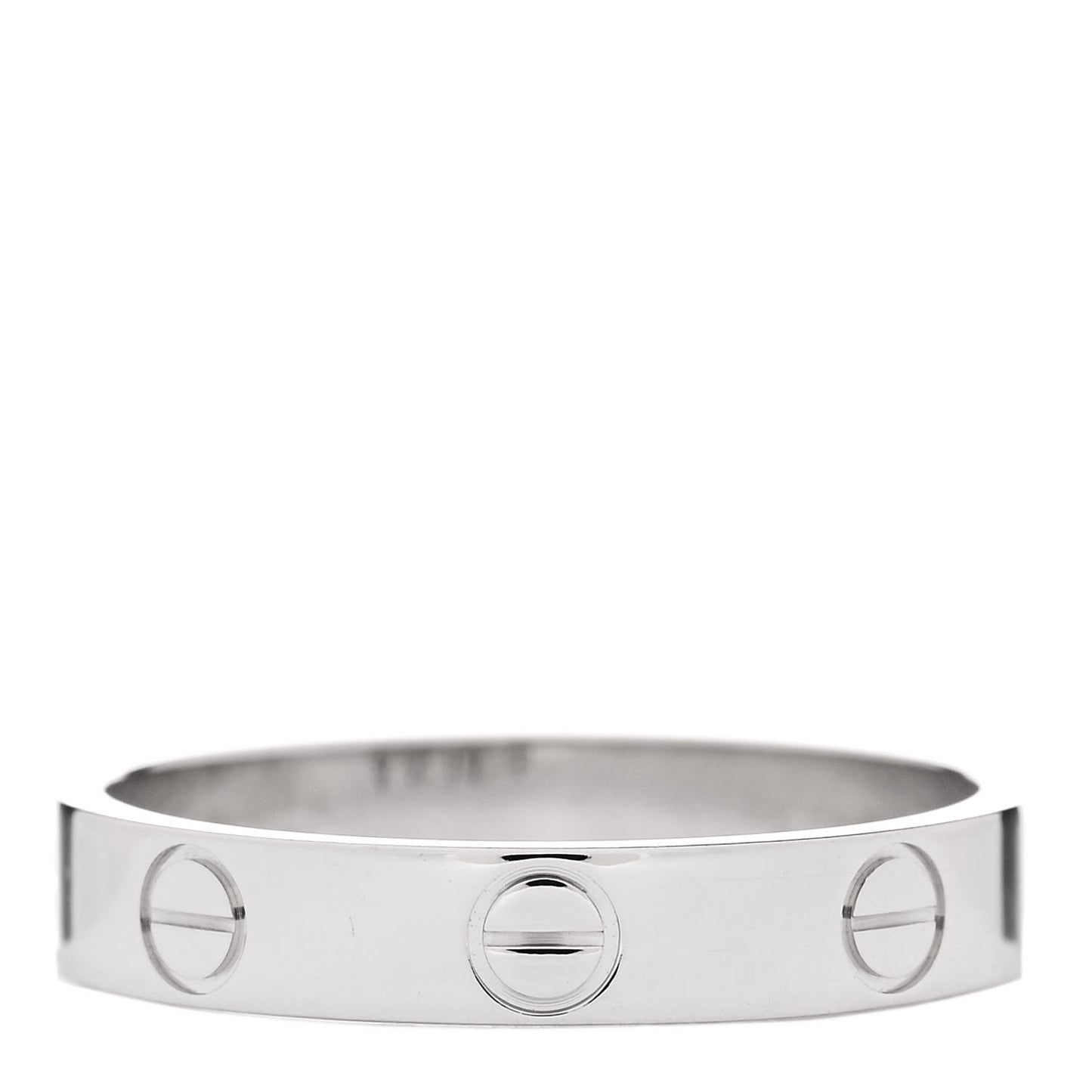 This is an authentic CARTIER 18K White Gold 3.5mm LOVE Wedding Band Ring 53 6.5. The ring is crafted of 18 karat white gold and features the signature LOVE screw symbol motif engraved throughout the band.Follow this item for alerts. Cartier is a registered trademark of Cartier. FASHIONPHILE is not affiliated with Cartier.