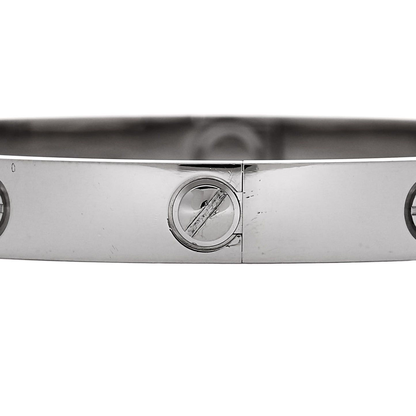 This is an authentic CARTIER 18K White Gold LOVE Bracelet 17. The bracelet is crafted of 18 karat white gold and features the signature engraved LOVE screw motifs throughout the bangle. The bracelet also features two functional screws on either side to open and close.Follow this item for alerts. Cartier is a registered trademark of Cartier. FASHIONPHILE is not affiliated with Cartier.