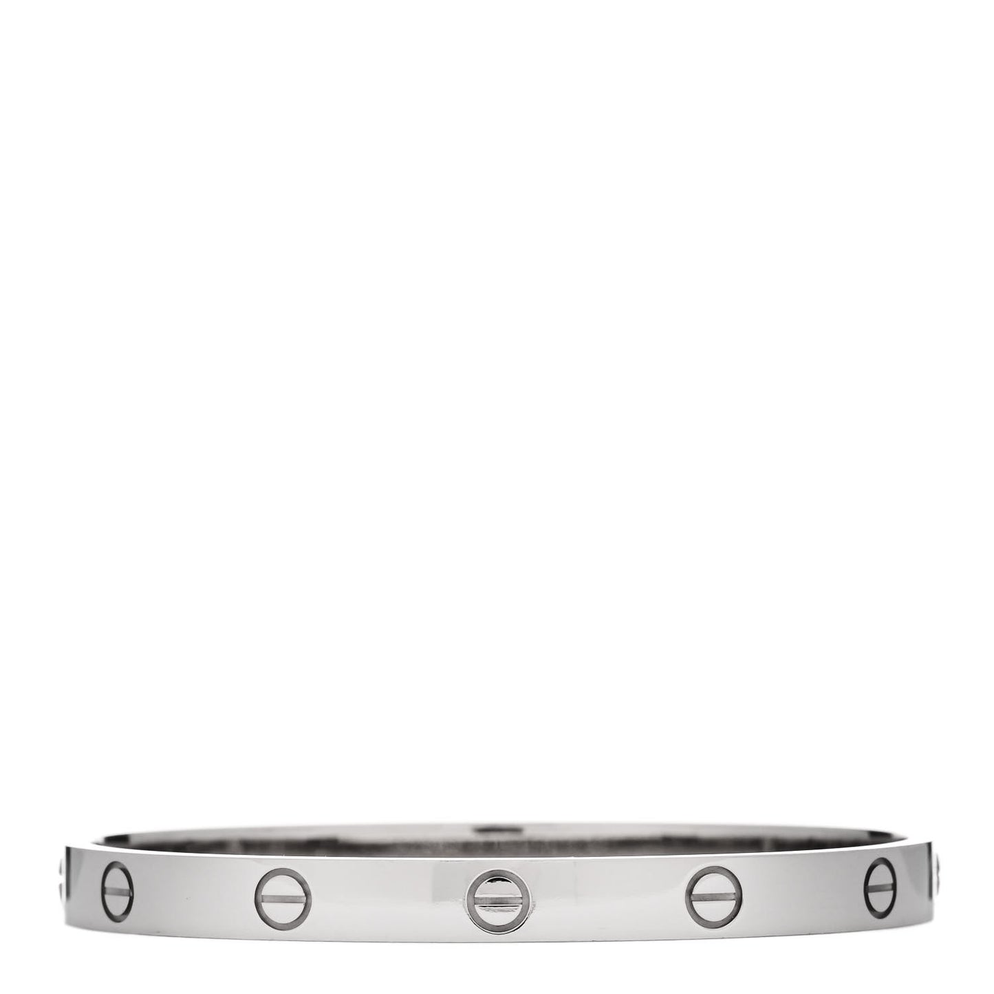 This is an authentic CARTIER 18K White Gold LOVE Bracelet size 18. The bracelet is crafted of 18 karat white gold and features the signature engraved LOVE motif throughout the bangle. The bracelet also features the newest Cartier screw system that prevents the loss of the screws.Follow this item for alerts. Cartier is a registered trademark of Cartier. FASHIONPHILE is not affiliated with Cartier.