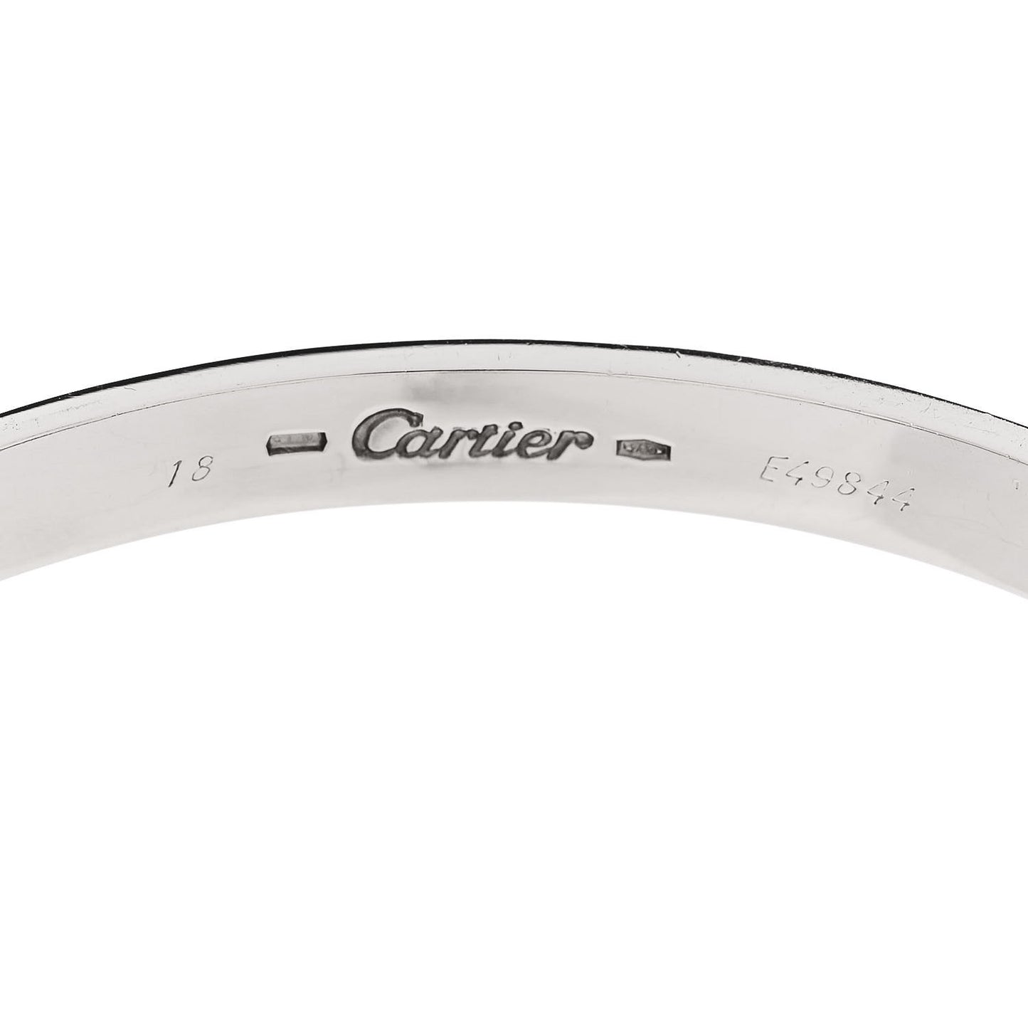 This is an authentic CARTIER 18K White Gold LOVE Bracelet size 18. The bracelet is crafted of 18 karat white gold and features the signature engraved LOVE motif throughout the bangle. The bracelet also features the original Cartier screw system that enables the screws to be completely removed.Follow this item for alerts. Cartier is a registered trademark of Cartier. FASHIONPHILE is not affiliated with Cartier.