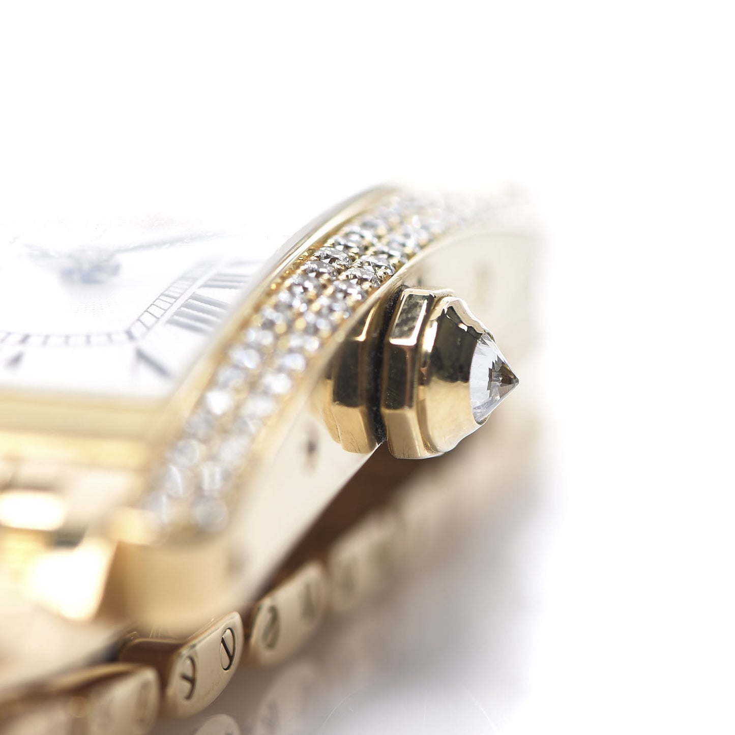 This is an authentic CARTIER 18K Yellow Gold Diamond 19mm Tank Americaine Quartz Watch. This watch is crafted of 18 karat yellow gold and features a classic diamond encrusted case, bold Roman numeral hour markers, blue sword hands, diamond cabochon crown, and a quartz movement. This is a beautiful watch with the classic style only from Cartier!Follow this item for alerts. Cartier is a registered trademark of Cartier. FASHIONPHILE is not affiliated with Cartier.