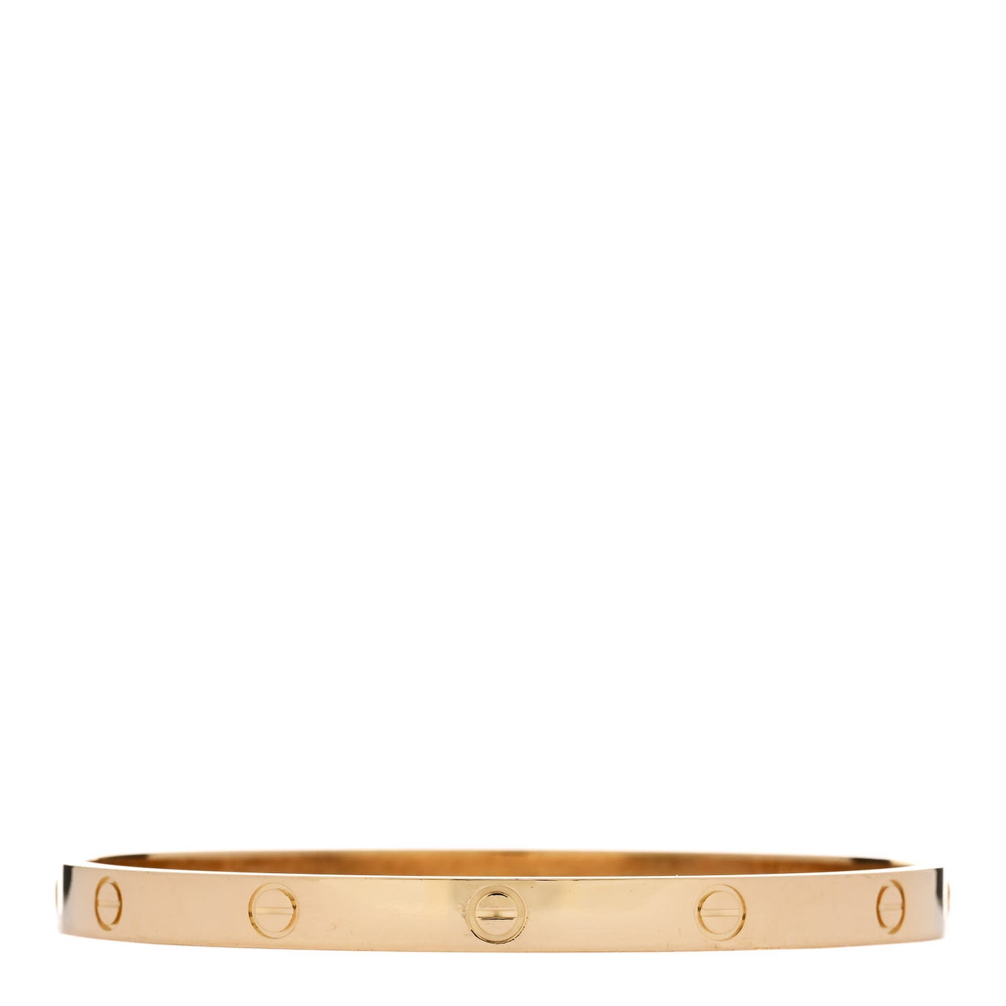 This is an authentic CARTIER 18K Yellow Gold LOVE Bracelet size 21. The bracelet is crafted of 18 karat yellow gold and features the signature engraved LOVE screw symbol motifs throughout the band. The bracelet also features the screw system that prevents the loss of the screws when opening the bangle.Follow this item for alerts. Cartier is a registered trademark of Cartier. FASHIONPHILE is not affiliated with Cartier.