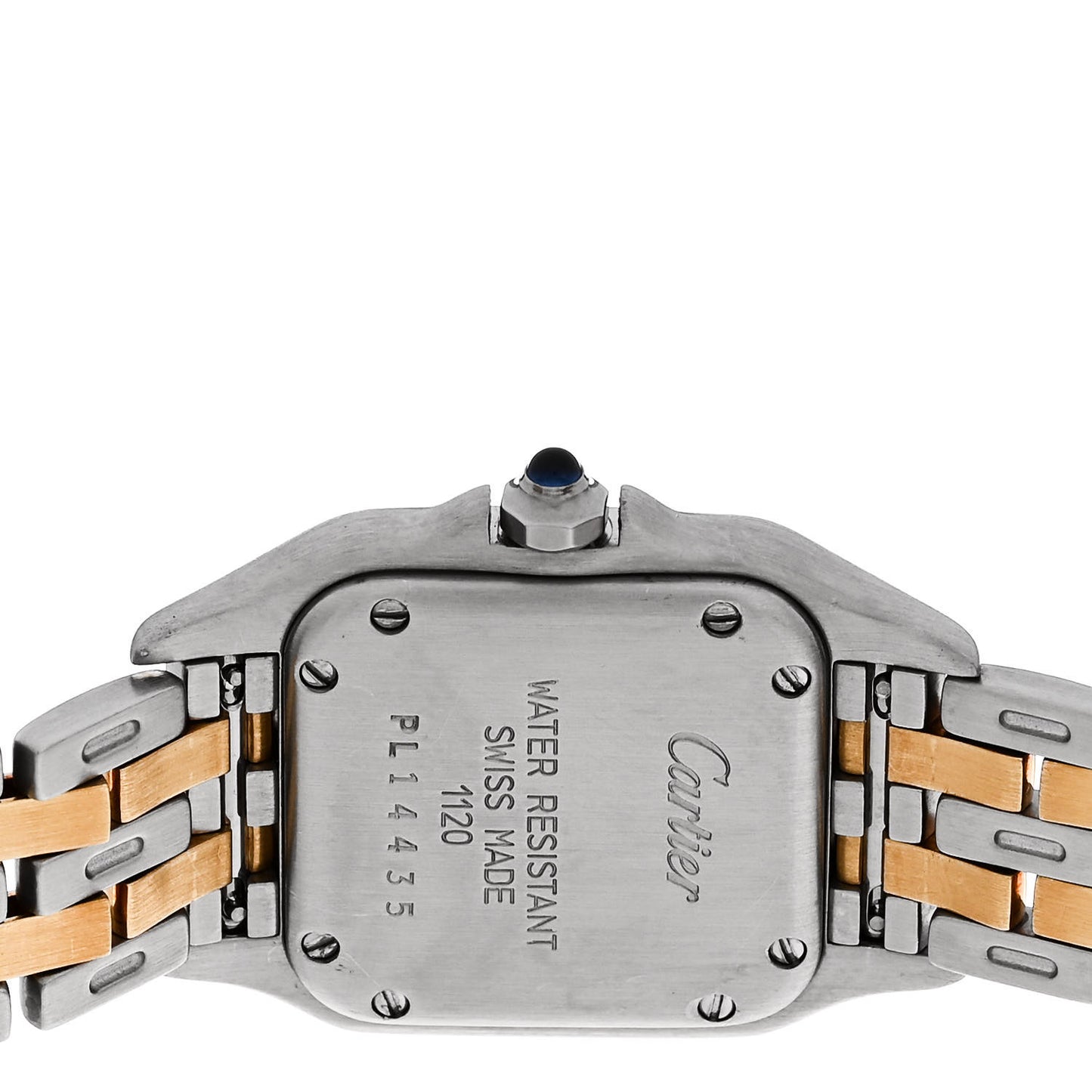 This is an authentic CARTIER Stainless Steel 18K Yellow Gold 22mm Panthere Quartz Watch. The watch is crafted of stainless steel and 18 karat yellow gold, and features an ivory dial with black Roman numeral hour markers, blue steel sword hands, date indicator, sapphire crystal, blue cabochon crown, two-tone link bracelet with hidden deployant clasp, and a quartz movement.Follow this item for alerts. Cartier is a registered trademark of Cartier. FASHIONPHILE is not affiliated with Cartier.