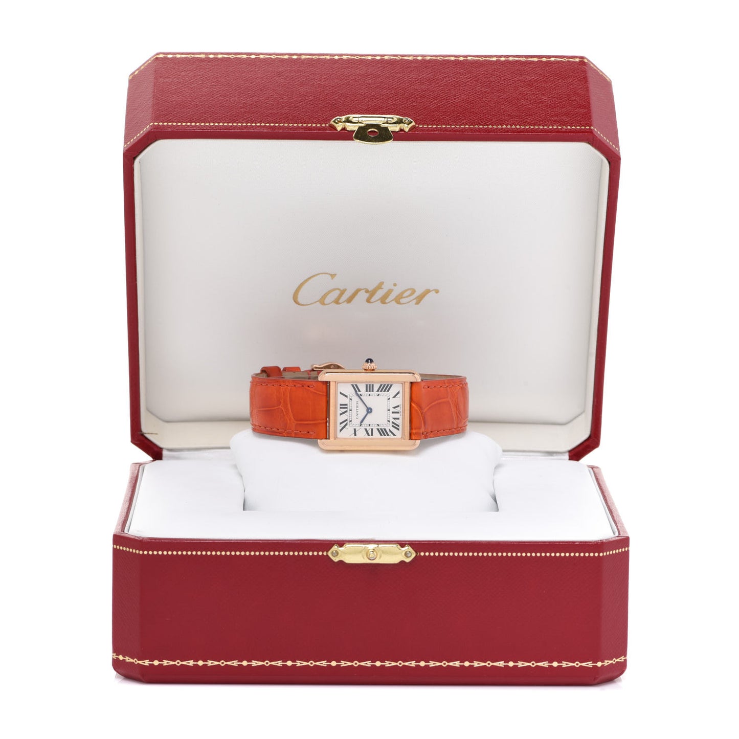 This is an authentic CARTIER Stainless Steel 18K Yellow Gold Alligator 24mm Tank Solo Quartz Watch in Orange. The watch is crafted of 18 karat yellow gold and stainless steel, and features a white dial with black Roman numeral hour markers, sapphire crystal, blue alligator strap, and a Swiss quartz movement.Follow this item for alerts. Cartier is a registered trademark of Cartier. FASHIONPHILE is not affiliated with Cartier.