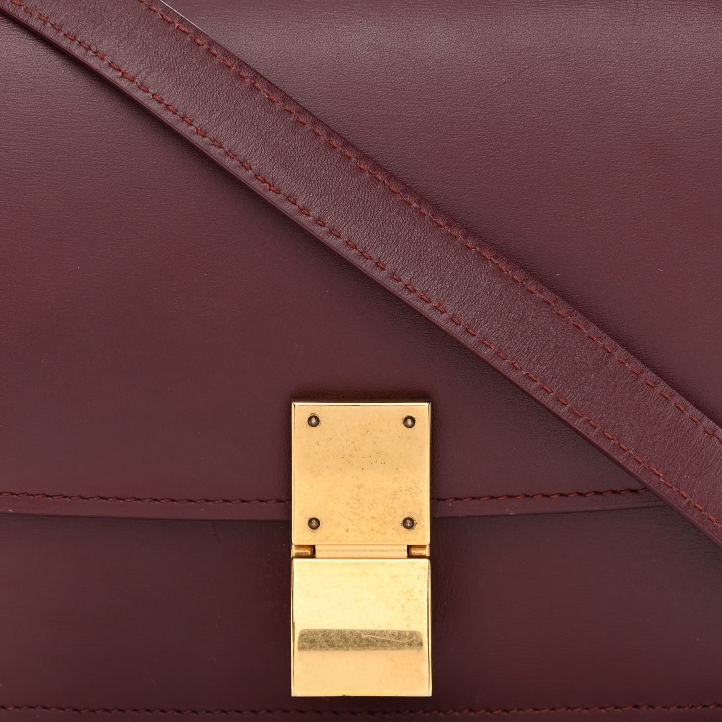 Celine/ Bags/ Shoulder Bags /Celine Box Calfskin Small Classic Box Flap Bag Burgundy