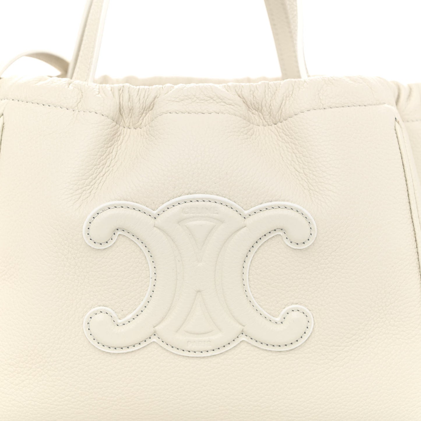 Calfskin Cuir Small Triomphe Cabas Drawstring White