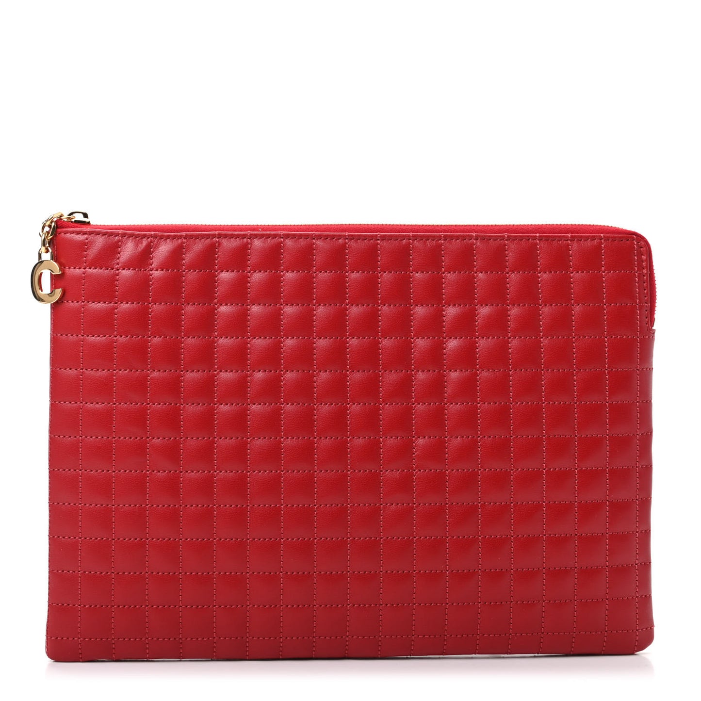 Celine/ Accessories/ Clutch & Evening /Celine Calfskin Quilted C Charm Pouch Red