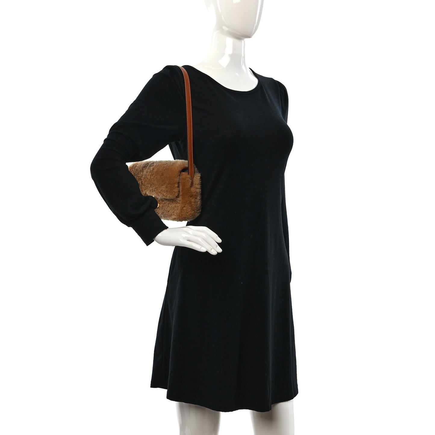 This is an authentic CELINE Calfskin Triomphe Fluffy Shearling Bag in Beige. This chic shoulder bag is crafted of luxuriously smooth shearling fur and brown calfskin leather. The bag features an adjustable shoulder strap and a facing flap with a gold press-lock. This opens to a partitioned brown leather interior with a patch pocket.Follow this item for alerts. Celine is a registered trademark of Celine. FASHIONPHILE is not affiliated with Celine.