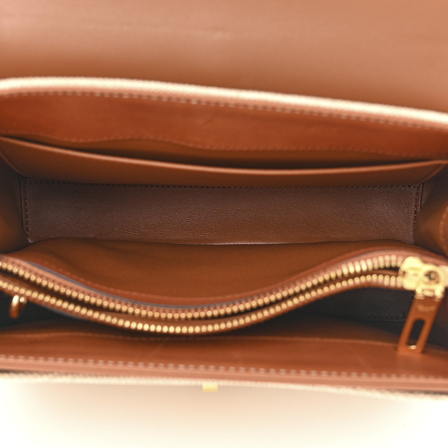 Canvas Calfskin Small 16 Top Handle Bag Natural Tan