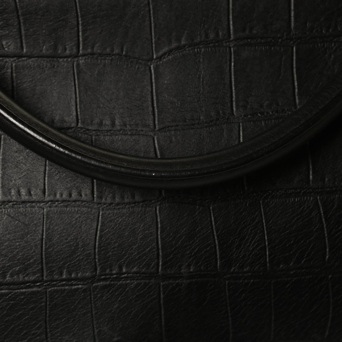 Crocodile Embossed Calfskin Suede Medium Trapeze Black