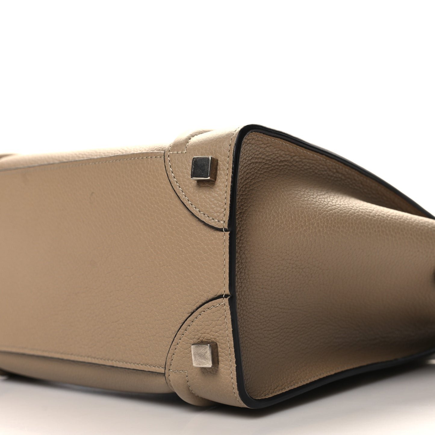 This is an authentic CELINE Drummed Calfskin Micro Luggage in Dune. This sophisticated tote is crafted of drummed calfskin leather in dark beige. The bag features rolled leather top handles, expandable sides, a front zippered pocket, and decorative leather trim. The top zipper opens to a matching microfiber interior with zipper and patch pockets.Follow this item for alerts. Celine is a registered trademark of Celine. FASHIONPHILE is not affiliated with Celine.