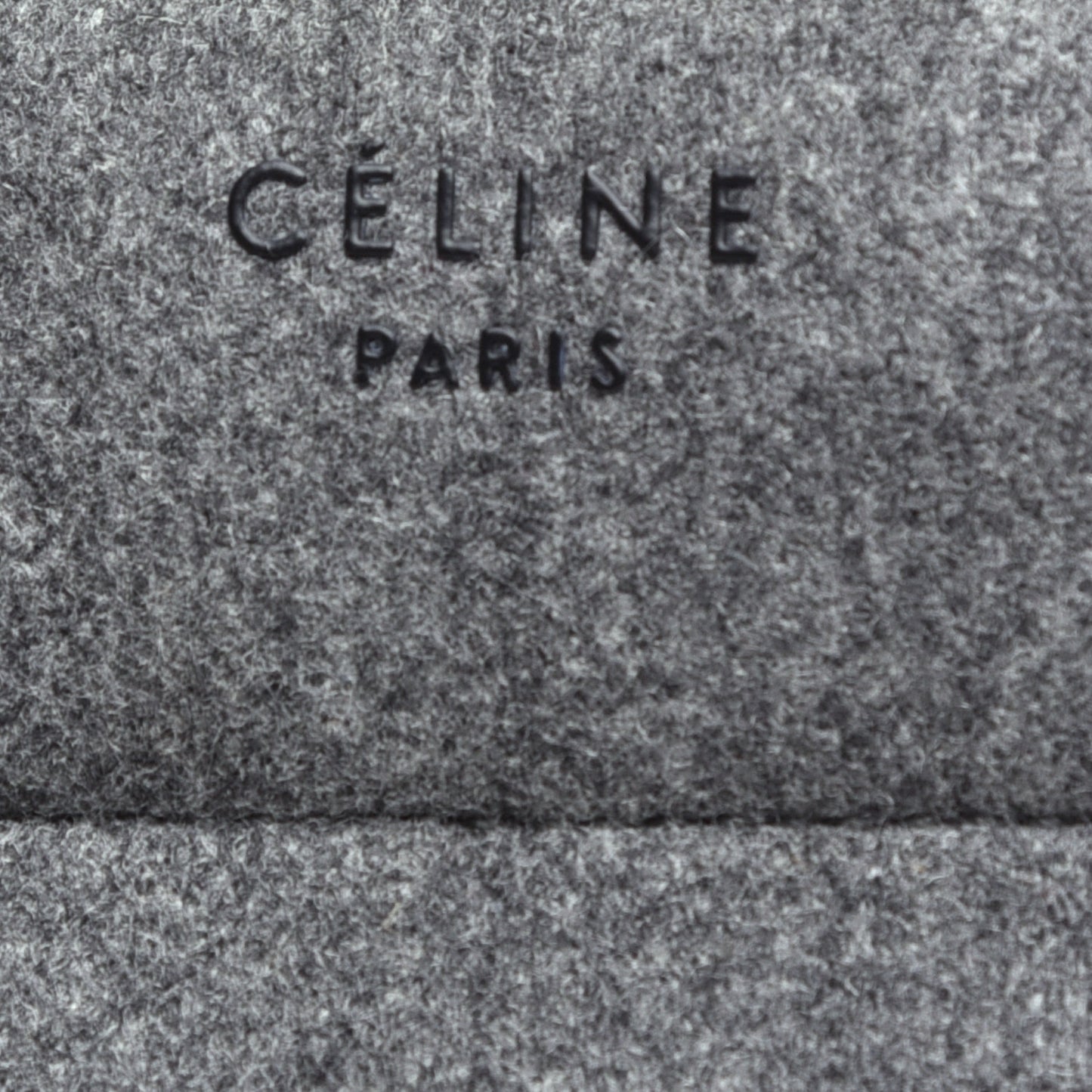 This is an authentic CELINE Felt Medium Phantom Luggage Pearl Grey. This stylish handbag is expertly designed of soft and sturdy grey felt in a signature style with wide, expandable wings. The bag features comfortable rolled black leather top handles and an exterior braided tassel zipper pull for the front facing zipper. The top opens to a spacious matching felt interior with a zipper pocket.Follow this item for alerts. Celine is a registered trademark of Celine. FASHIONPHILE is not affiliated with Celine.