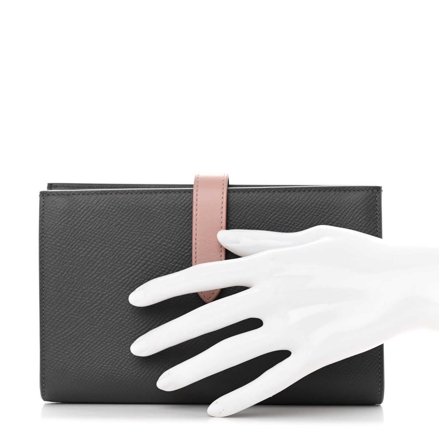 Grained Calfskin Large Multifunction Strap Wallet Grey Vintage Pink